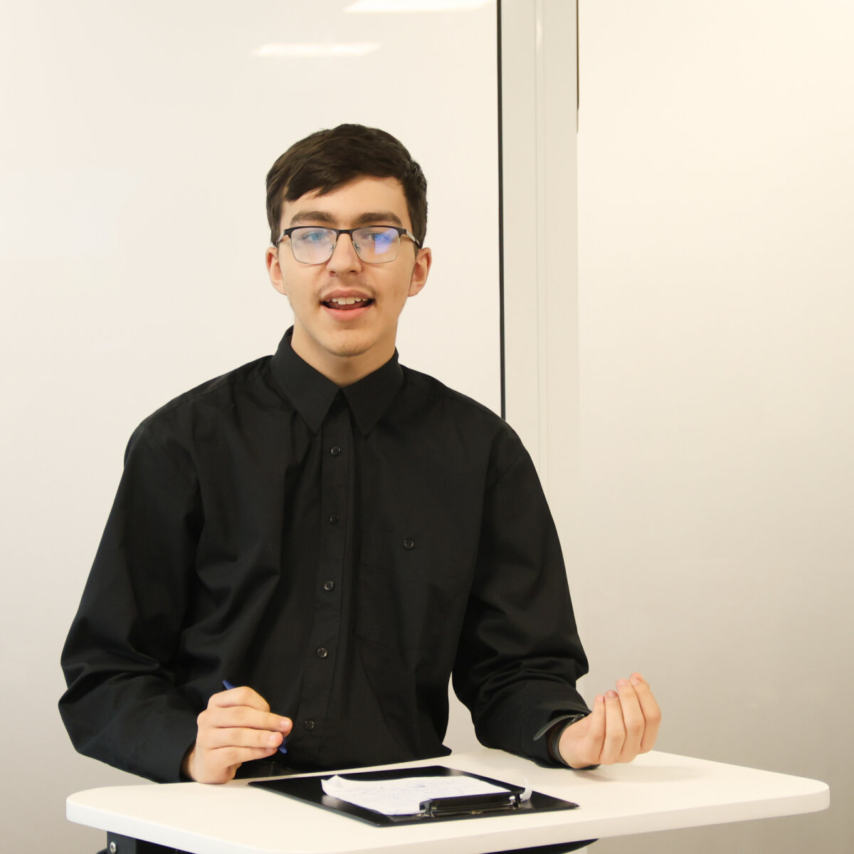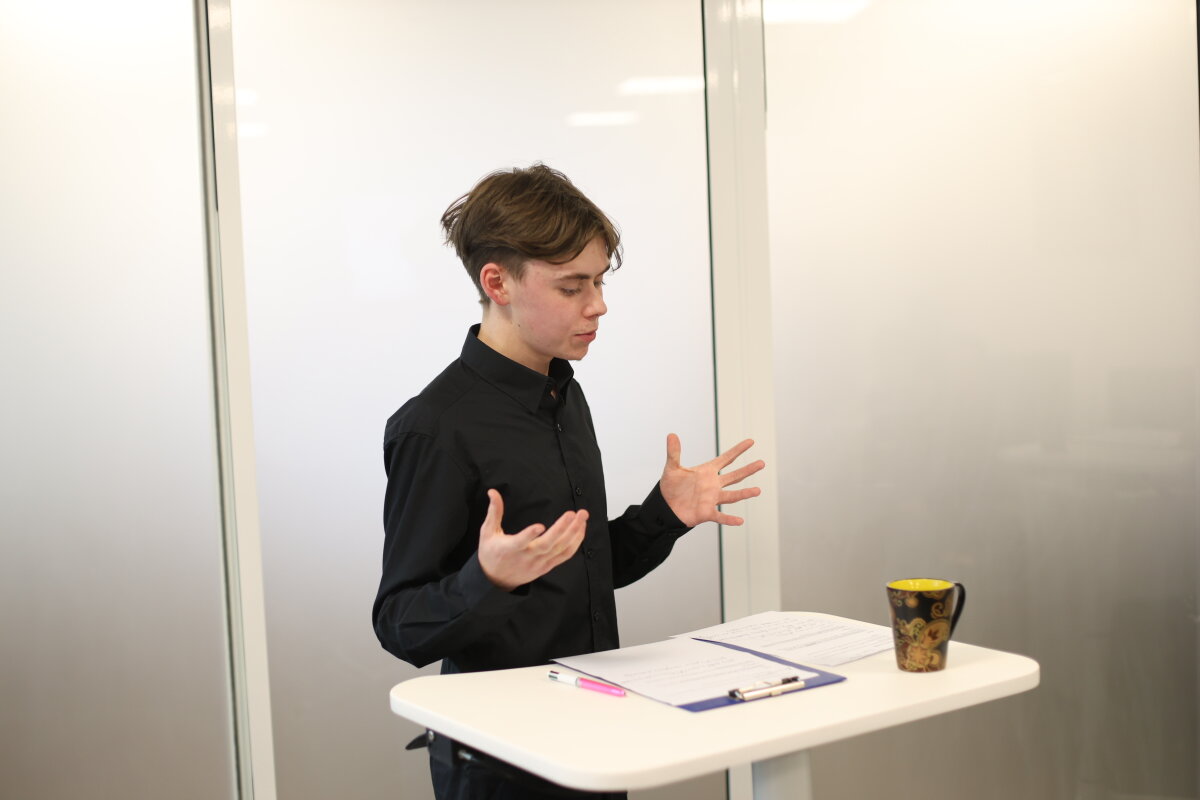 Neigiančiosios debatų pusės kalbėtojas IVa klasės mokinys Tomas Girdžius akcentavo, kad reikšmingiausią poveikį klimatui daro tokie sektoriai kaip gyvulininkystė ir transportas, todėl mainymasis ar dovanojimas – tik papildoma, bet ne pagrindinė kovos su klimato kaita priemonė.