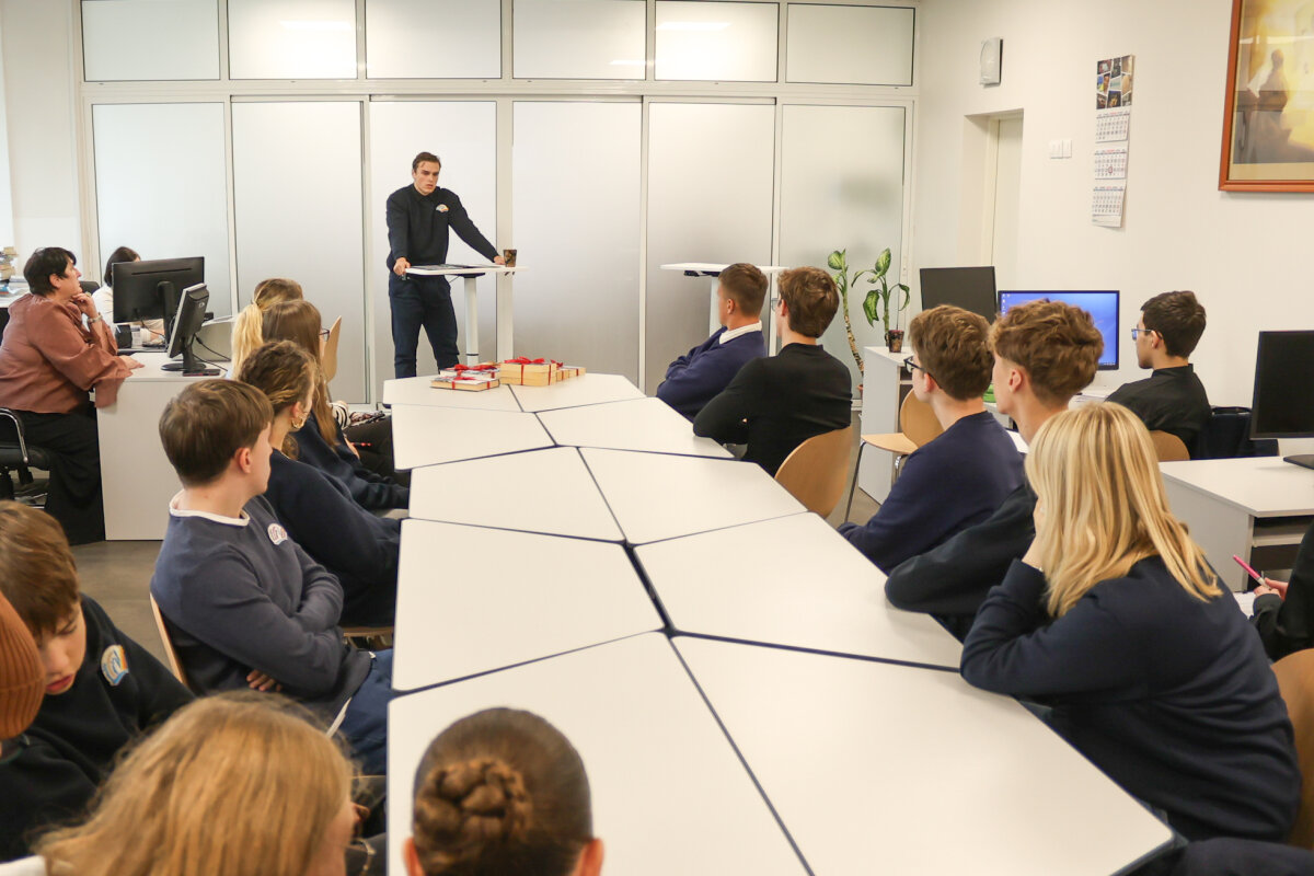 Netradicinė pamoka-susitikimas su Seimo nariu Sauliumi Skverneliu. -