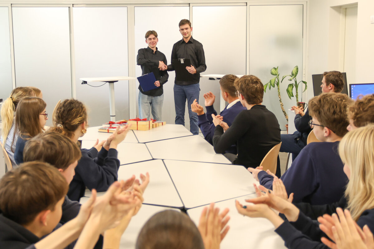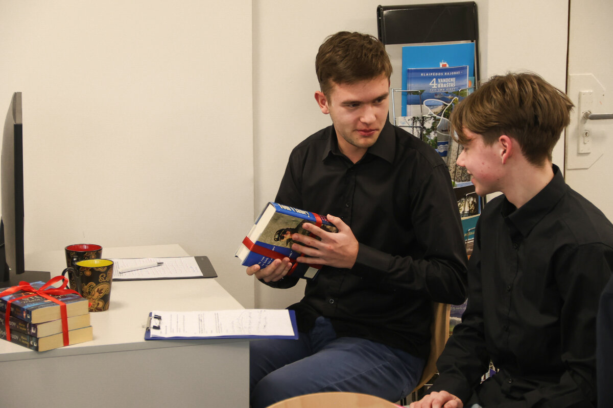 Dalyviai buvo apdovanoti knygomis, kurias debatų klubo mokytoja Diana Butkutė dosniai padovanojo iš savo asmeninės bibliotekos.