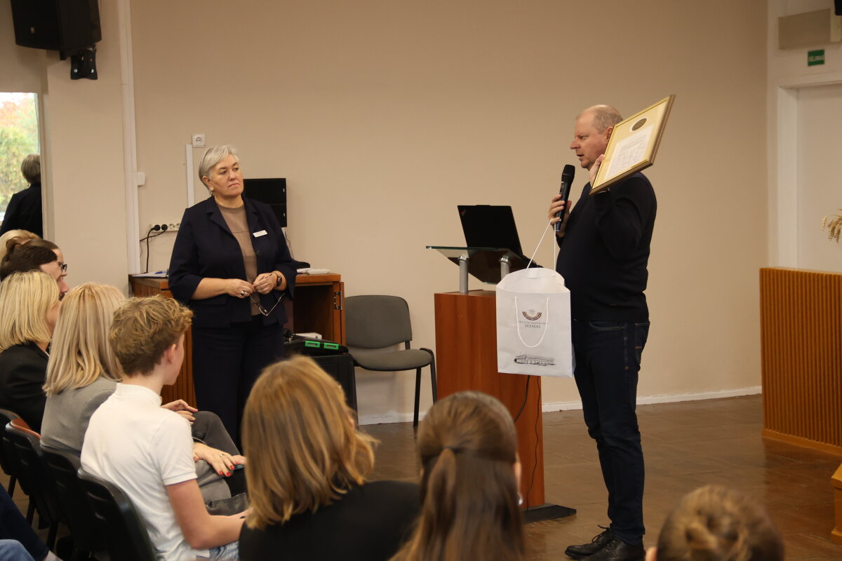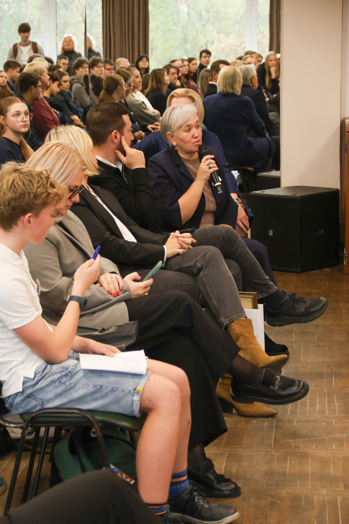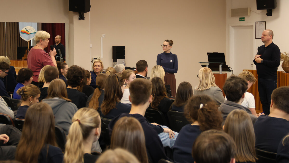Gimnazistai ir mokytojai politikui uždavė klausimų apie dabartinės vyriausybės nestabilumą, apie radikalias jėgas, apie politinius monstrus, apie balsavimo teisę nuo 16 m. ir palinkėjo nenustoti mokytis bei atsakingai dirbti Seime.