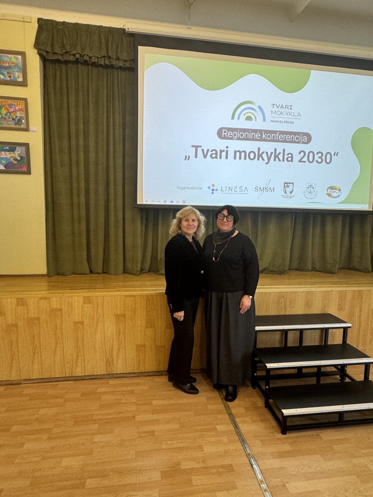 Įgyvendinant tarptautinį „Erasmus+“ projektą „Tvari mokykla“, Gargždų „Vaivorykštės“ gimnazijos anglų kalbos mokytoja Diana Butkutė ir biologijos mokytoja Raimonda Kundrotienė dalyvavo regioninėje konferencijoje „Tvari mokykla 2030“, vykusioje Radviliškio Gražinos pagrindinėje mokykloje. Konferencijoje buvo aptariamos šiuolaikinės švietimo įstaigų tvarumo kryptys, dalijamasi gerosiomis patirtimis bei idėjomis, kaip kurti atsakingą, aplinkai draugišką ir socialiai sąmoningą mokyklą.