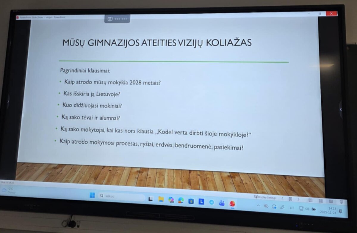 Po diskusijų grupėse įvairiais būdais pristatytas pirmas variantas, kaip galėtų būti suformuluota gimnazijos vizija. Dabar laukia svarstymas išplėstiniame mokytojų tarybos posėdyje.
