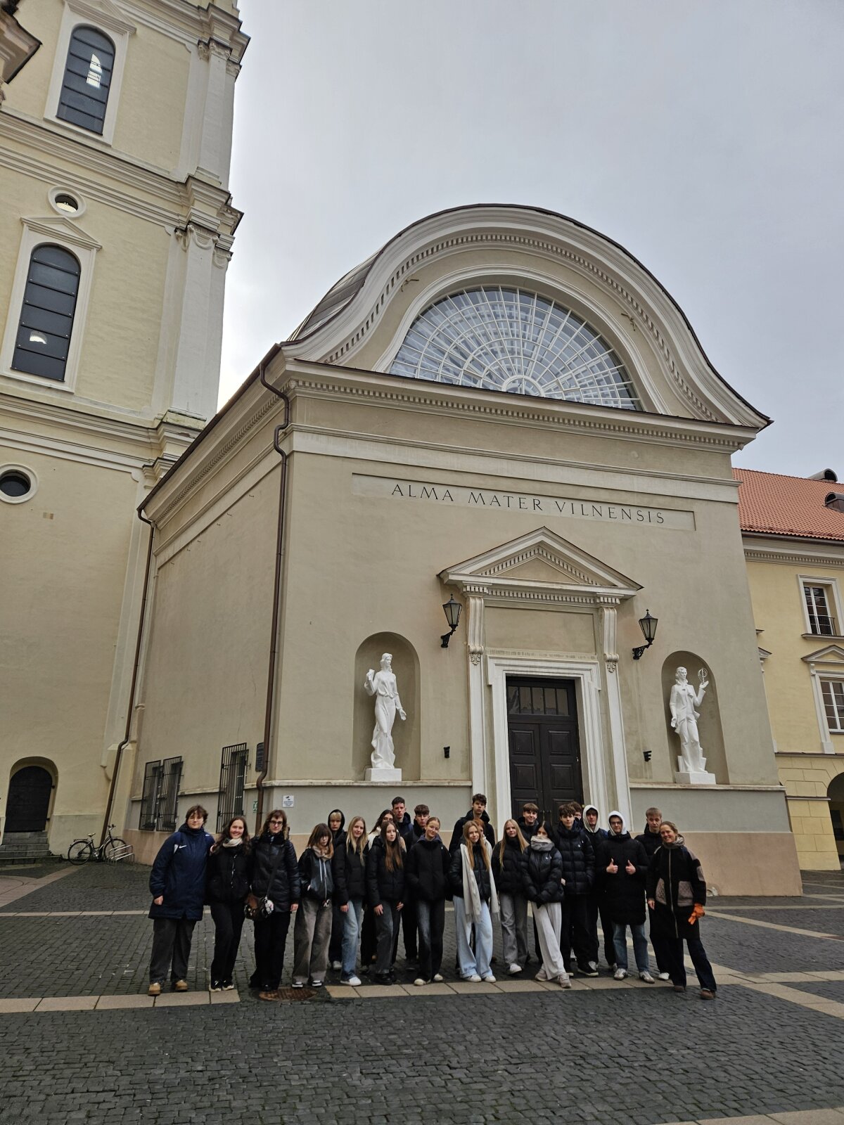 IIe klasės mokiniai Vilniaus universiteto kieme.