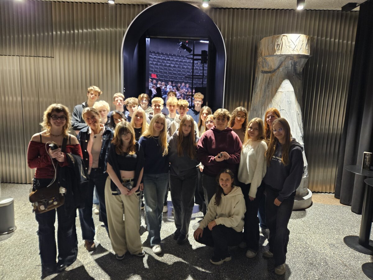 Nuotraukose: IIe klasės mokiniai su vadove Rasa Rusteikiene Keistuolių teatre po spektaklio ,,Pelėkautai".