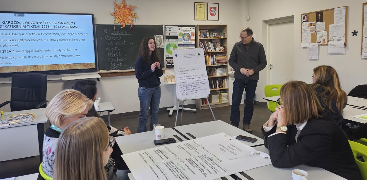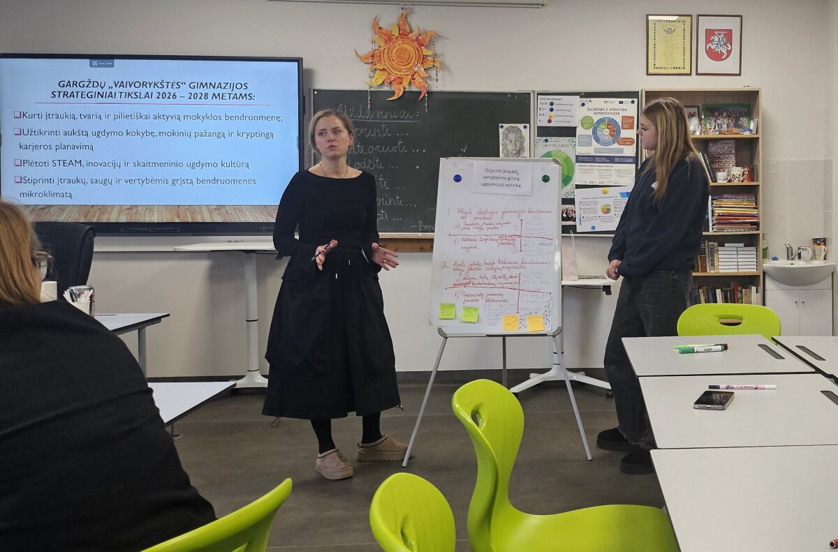Gimnazijos direktorė, darbo grupės moderatorė Rasa Mašurinienė strateginio plano kūrimo sesijas organizavo taip, kad dalykiškumas derėjo su kūrybiškumu. Visi nariai atsakingai bei noriai bendradarbiavo. Šįsyk darbas prasidėjo nuo simbolinio žingsnio – kiekvienas dalyvis pagal paveikslėlį pasirinko padėkos kortą ir perskaitė prasmingų padėkos žodžių. Tai sukūrė šiltą atmosferą, sustiprino bendrystės jausmą ir įgalino susitelkti į bendrą tikslą.