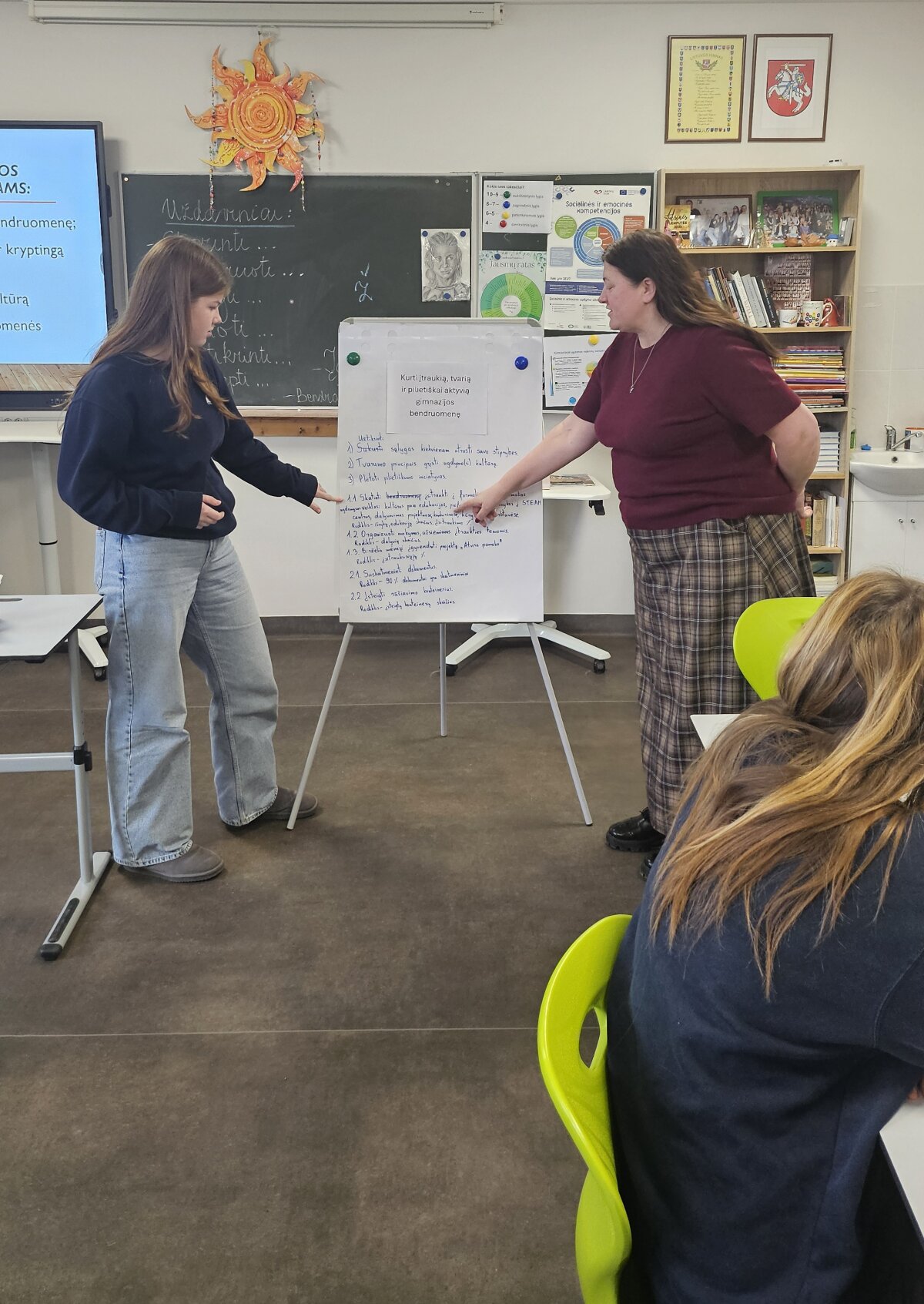 Dirbdami grupėse, gimnazijos bendruomenės atstovai vienam konkrečiam tikslui formulavo uždavinius, ieškojo jų įgyvendinimo priemonių, diskutavo dėl realių veiksmų ir sprendimų. Diskusijose gimė idėjų, kurios bus panaudotos kuriant planą.