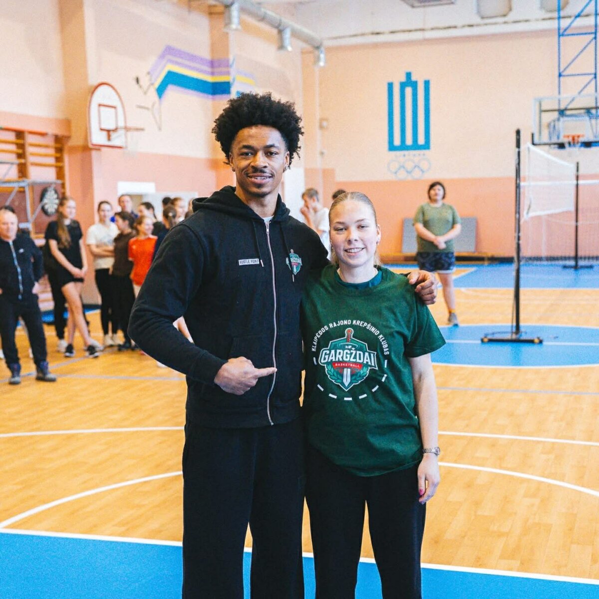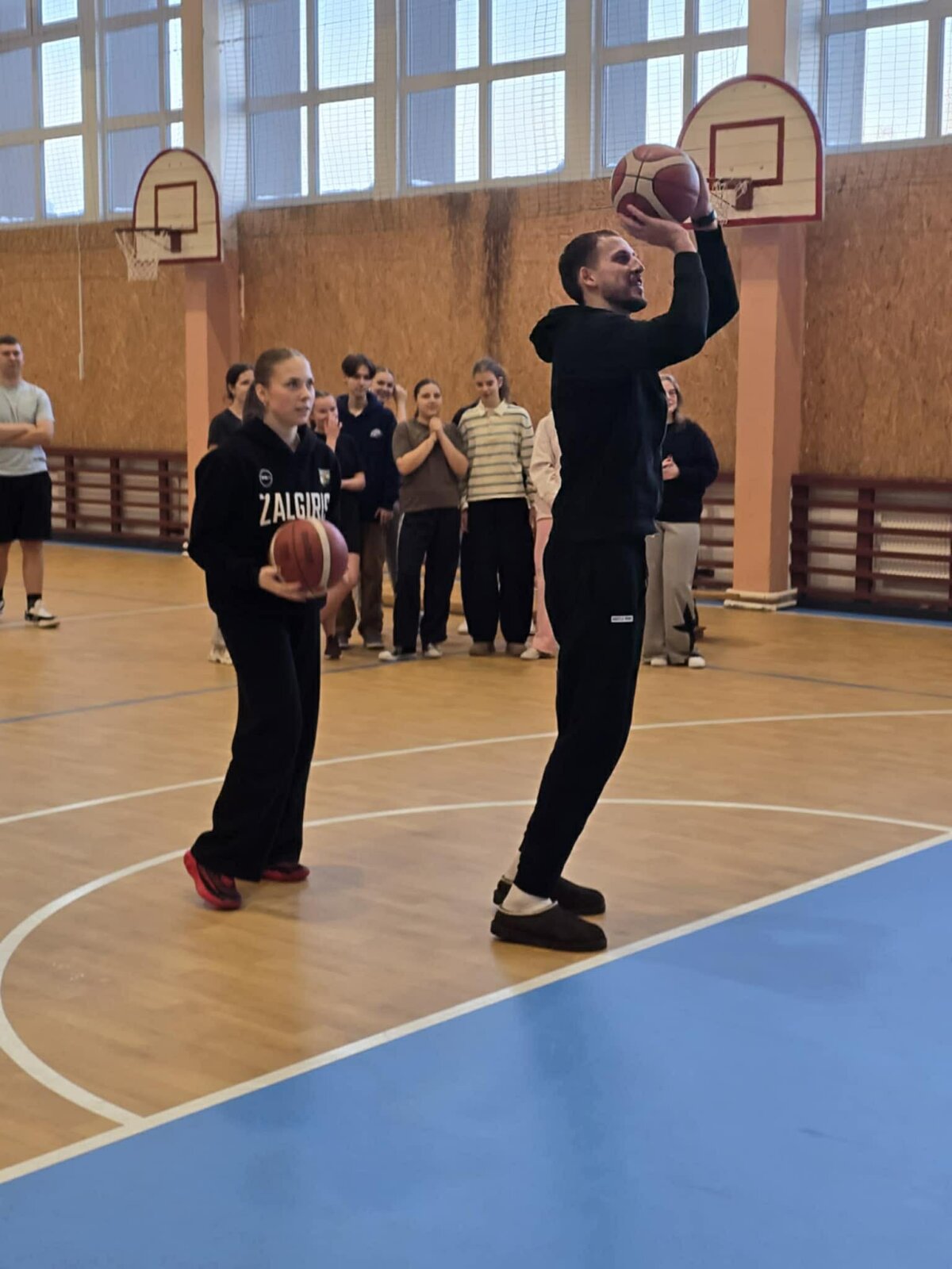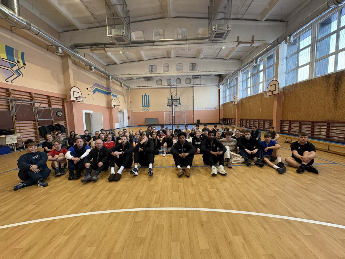 Gimnazistai bendravo ir sportavo su savo miesto komandos krepšininkais