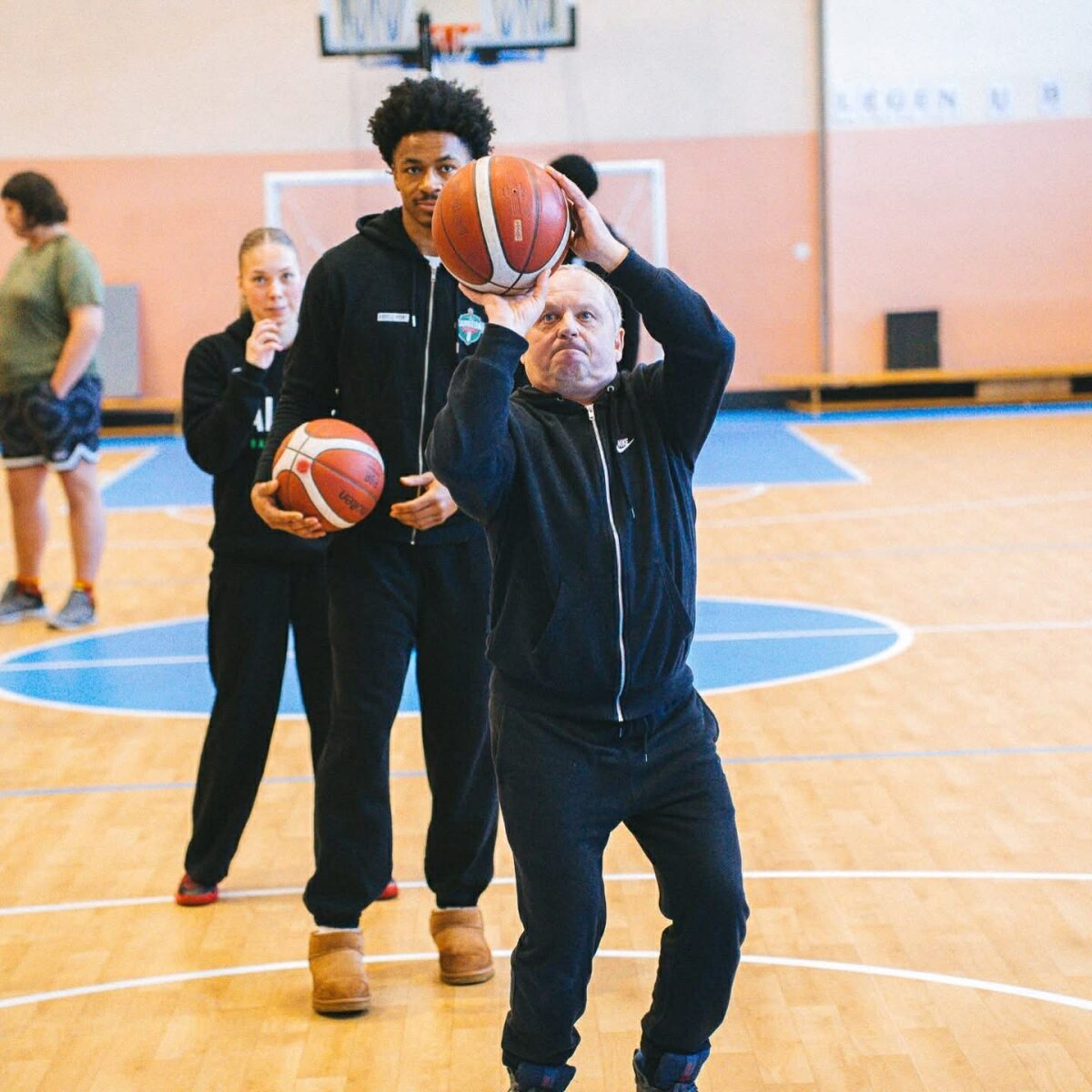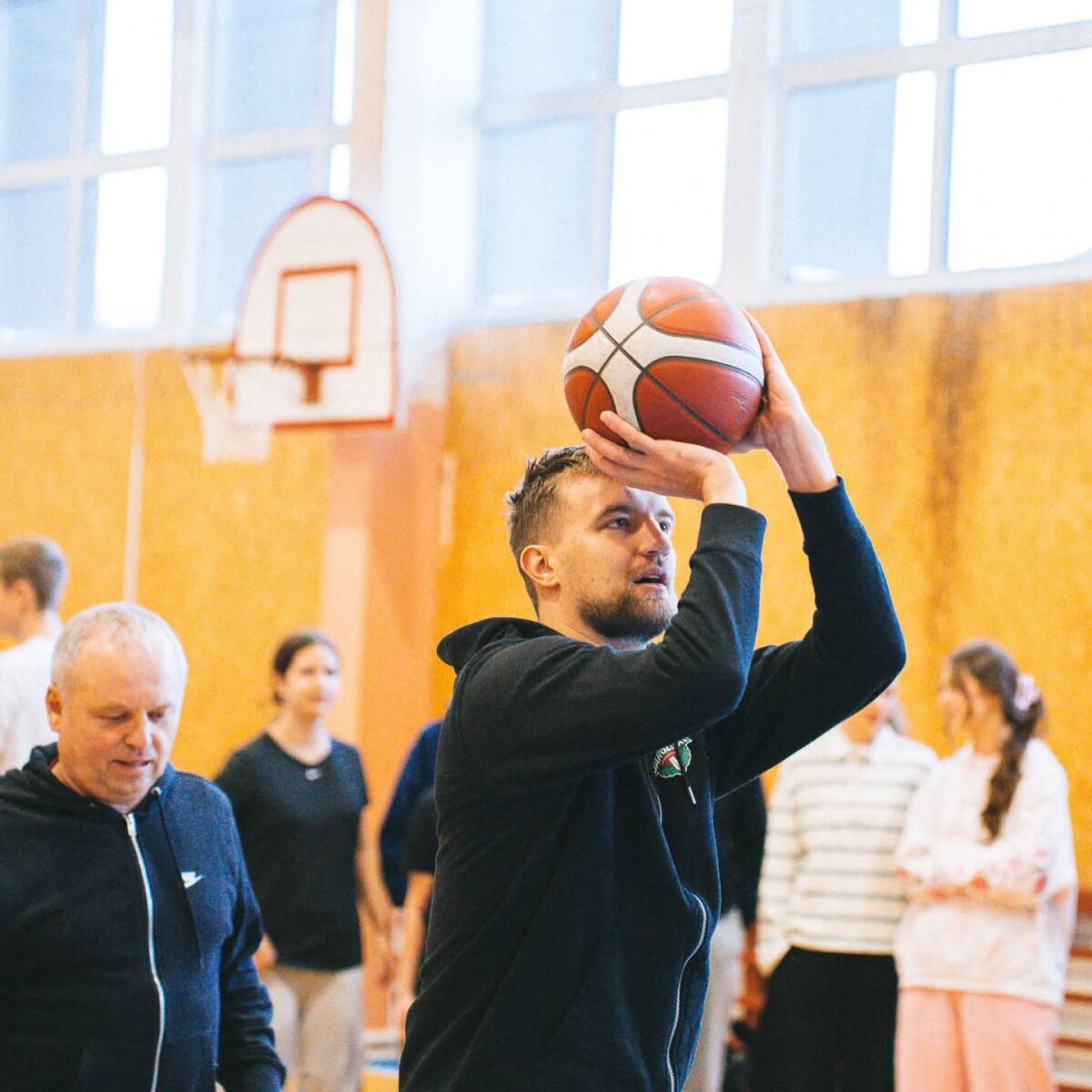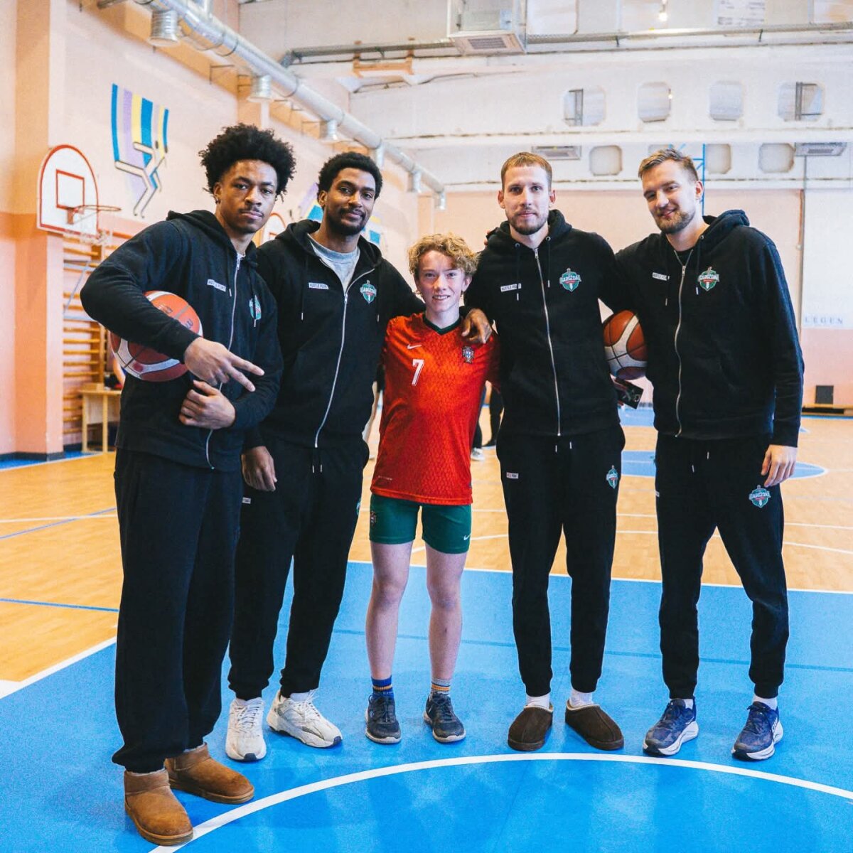 Gimnazistai bendravo ir sportavo su savo miesto komandos krepšininkais