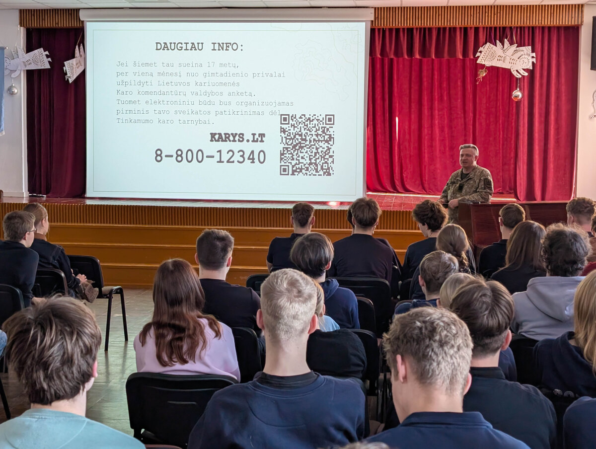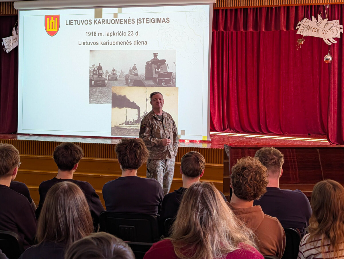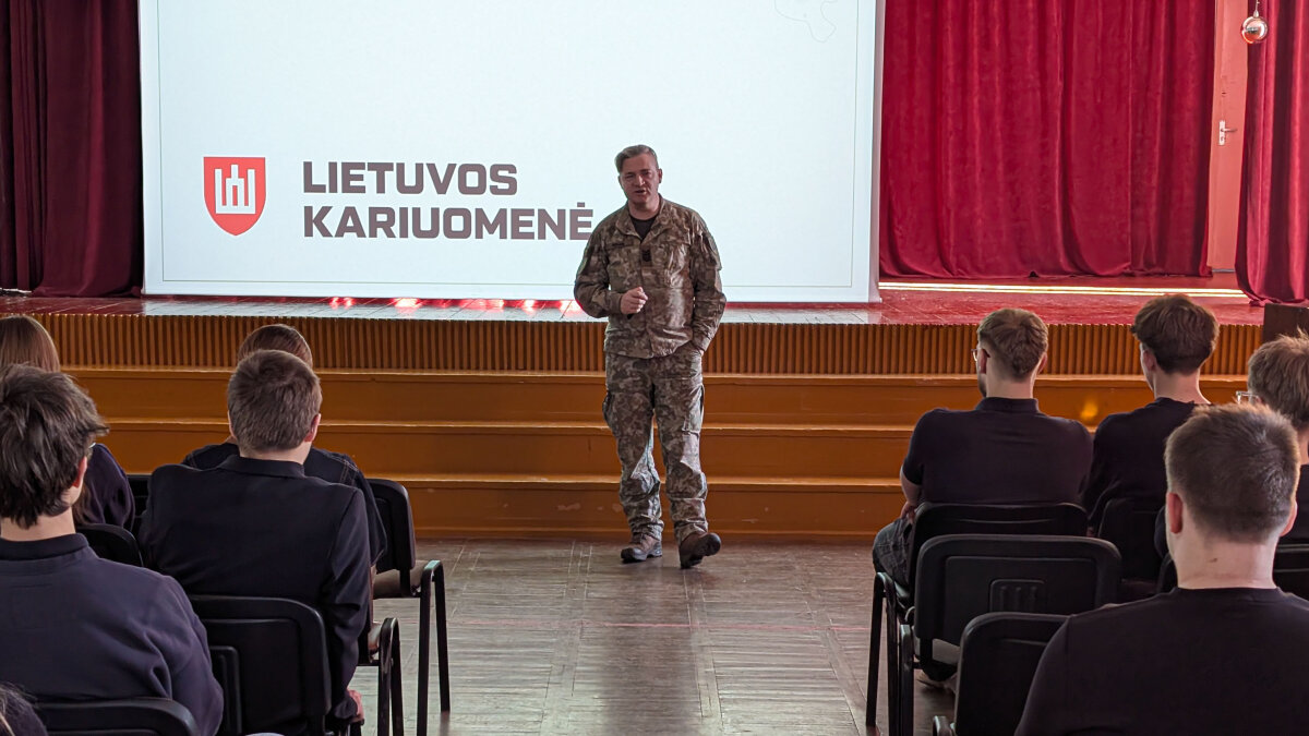 Gargždų „Vaivorykštės“ gimnazijoje lankėsi Lietuvos kariuomenės atstovas, kuris trečiokams pristatė krašto apsaugos sistemą, kariuomenės struktūrą ir tarnybos galimybes.