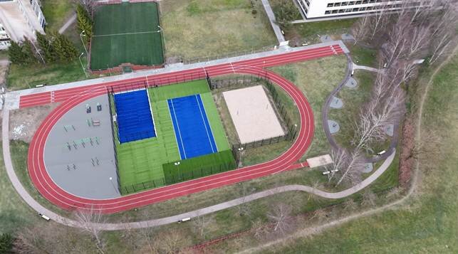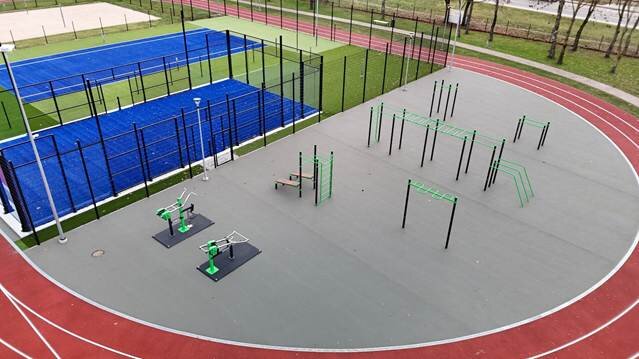 Tai ne tik sporto, bet ir poilsio erdvė. Greta aikštyno įrengtos jaukios poilsio zonos, kuriose galima atsipūsti po treniruotės, pabūti su draugais ar tiesiog stebėti aktyvią bendruomenės kasdienybę. Specializuotos teniso, padelio ir paplūdimio tinklinio aikštelės artimiausiu metu bus atidarytos.