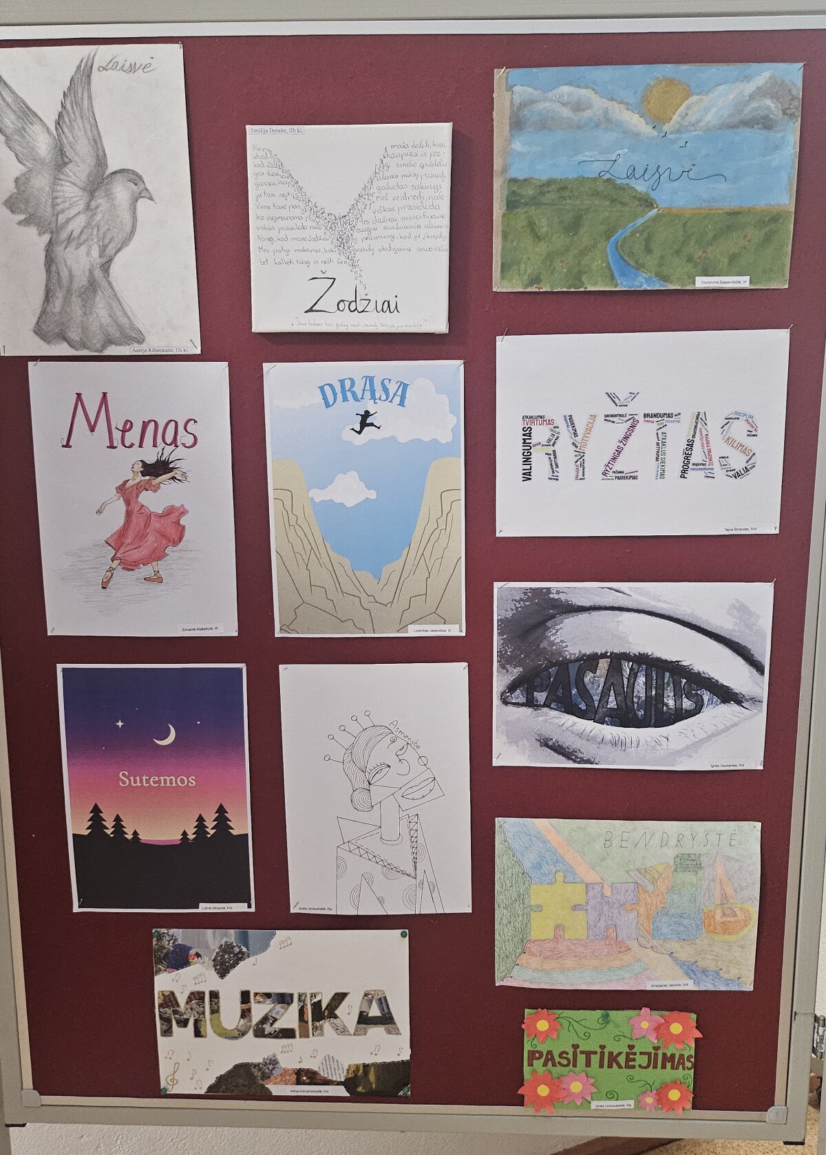 „Vaivorykštės“ gimnazijos lietuvių kalbos ir literatūros mokytojai kartu su savo mokiniais taip pat noriai vykdė įvairias veiklas: akciją „Rašyk žinutes tik lietuviškomis raidėmis“, kūrybines dirbtuves „Komplimentai“, dalyvauta viktorinoje „Ar žinai?“, meninio žodžio konkurse-šventėje. Šiandien lietuvių kalbos ir literatūros mokytojos Nerija Valinčienė ir Zofija Vaitkuvienė kviečia prie aktų salės aplankyti gimnazistų kūrybinių darbų parodą „Žodis, kuris mane įkvepia“. Mokiniai įvairiomis technikomis laisvalaikiu vizualizavo jiems reikšmingą žodį.