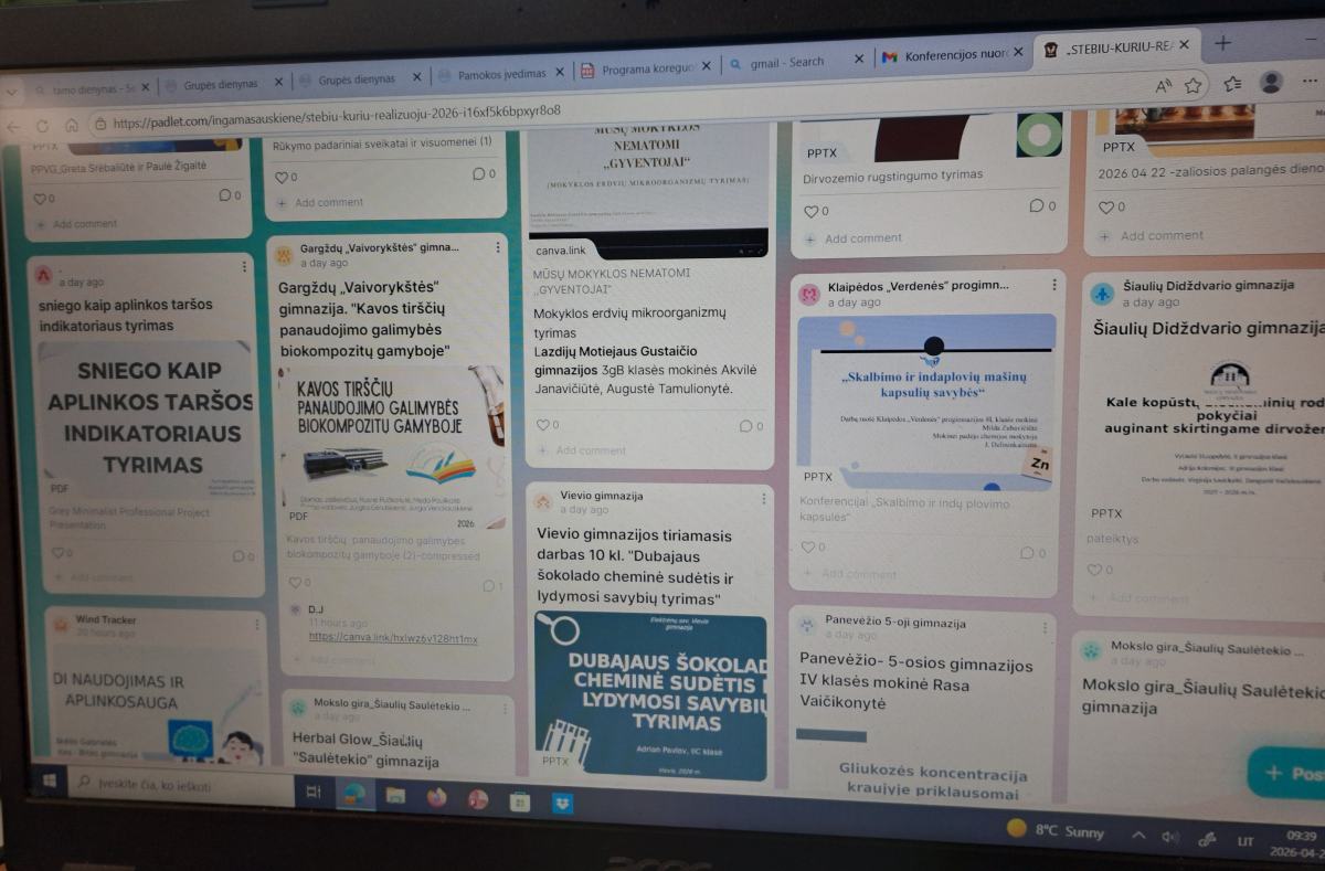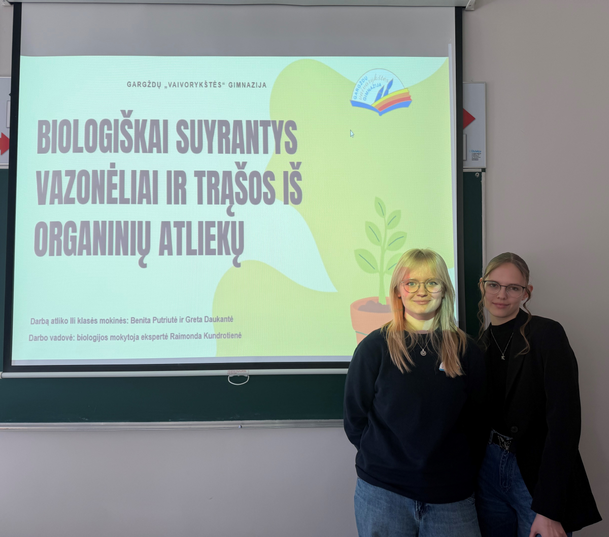 Konferencijoje taip pat buvo pristatytas III klasės mokinių Benitos Putriutės ir Gretos Daukantės darbas „Biologiškai suyrantys vazonėliai ir trąšos iš organinių atliekų“, vadovė – biologijos mokytoja ekspertė Raimonda Kundrotienė. Šie tyrimai atskleidžia bendrą kryptį – siekį mažinti atliekų kiekį ir kurti tvarius, aplinkai draugiškus sprendimus.