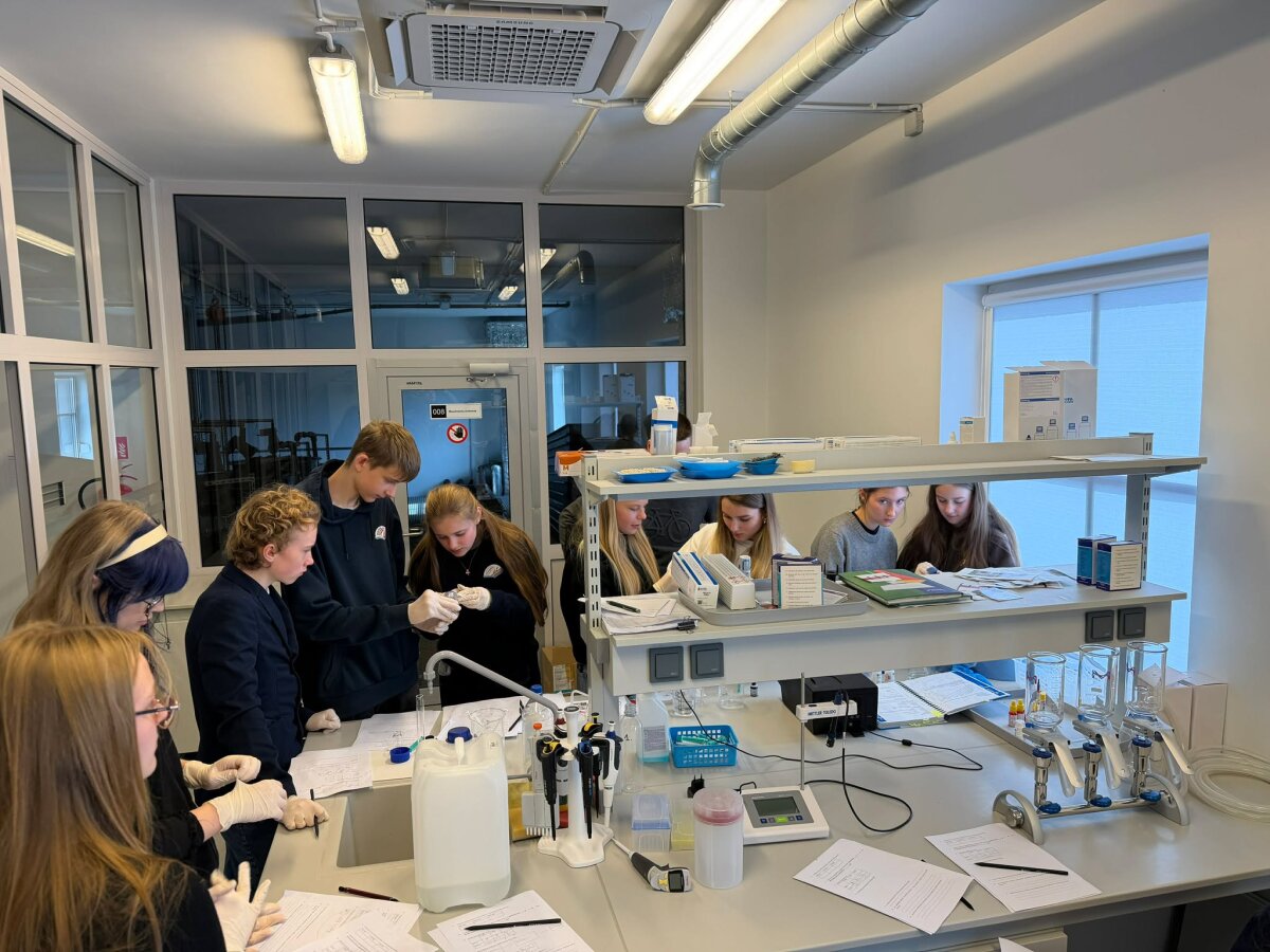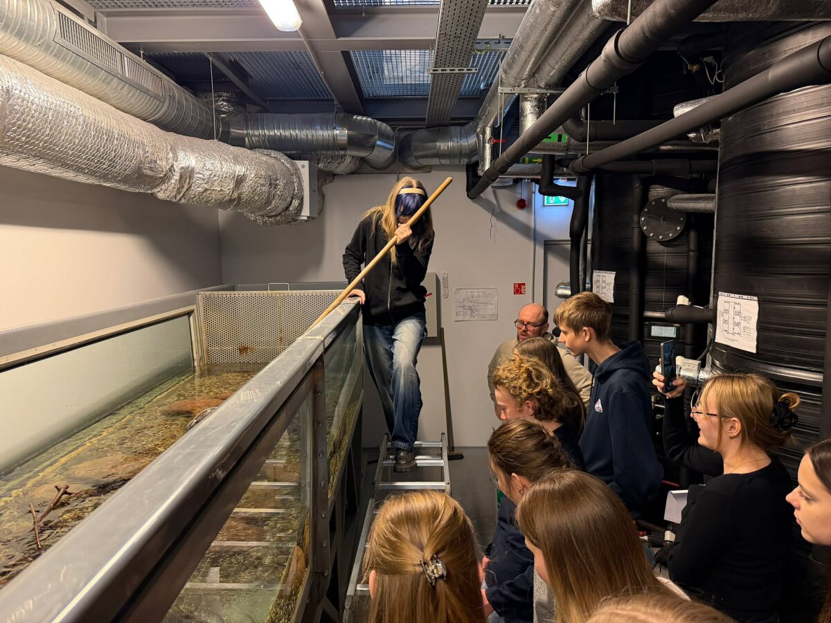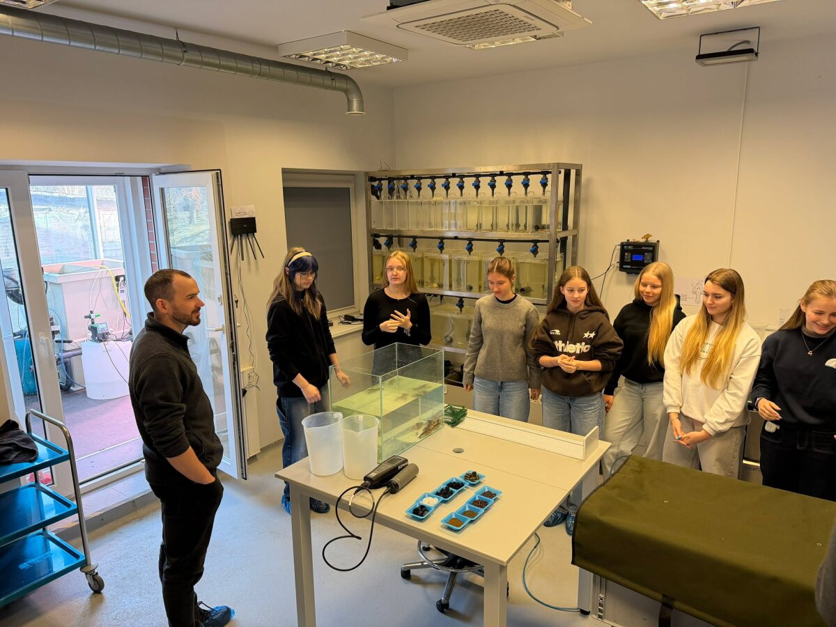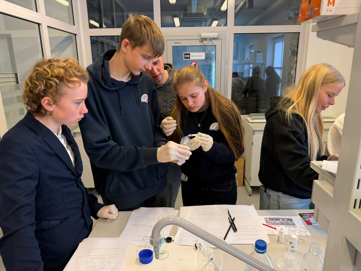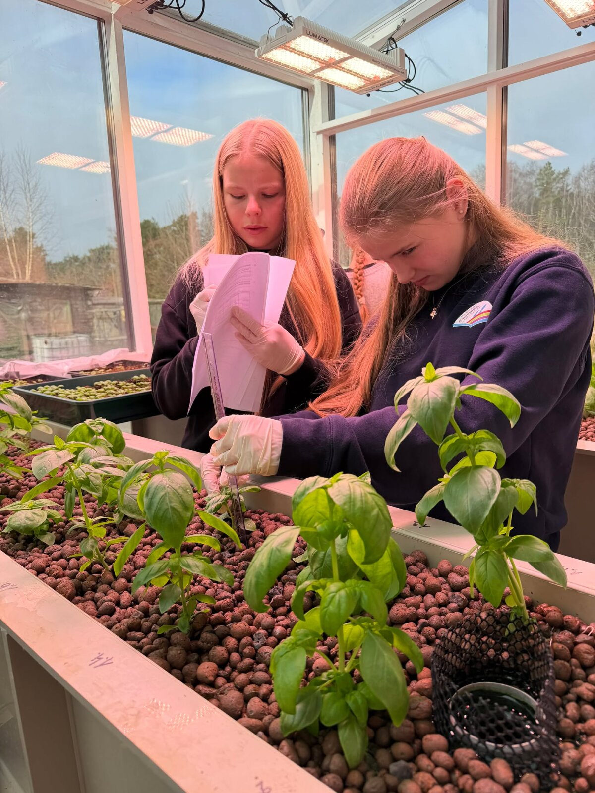 Vėliau persikėlėme į akvaponikos laboratoriją. Ten tyrėme augalus – matavome jų aukštį, skaičiavome lapus ir nustatėme aplinkos temperatūrą. Taip pat analizavome vandens kokybę: matavome pH, deguonies kiekį bei nustatėme amonio, nitritų ir nitratų koncentraciją.
