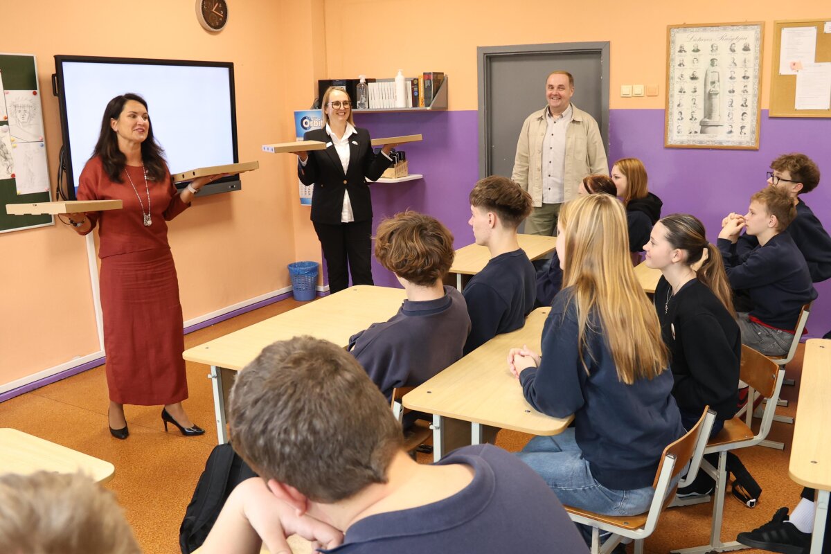 Pagražėjusiomis ir funkcionaliomis gimnazijos erdvėmis džiaugiamės nuo rugsėjo pradžios, o skanius prizus jau antrokams šią savaitę įteikė gimnazijos direktorė Rasa Mašurinienė ir direktorės pavaduotoja ugdymui Violeta Liuksienė.