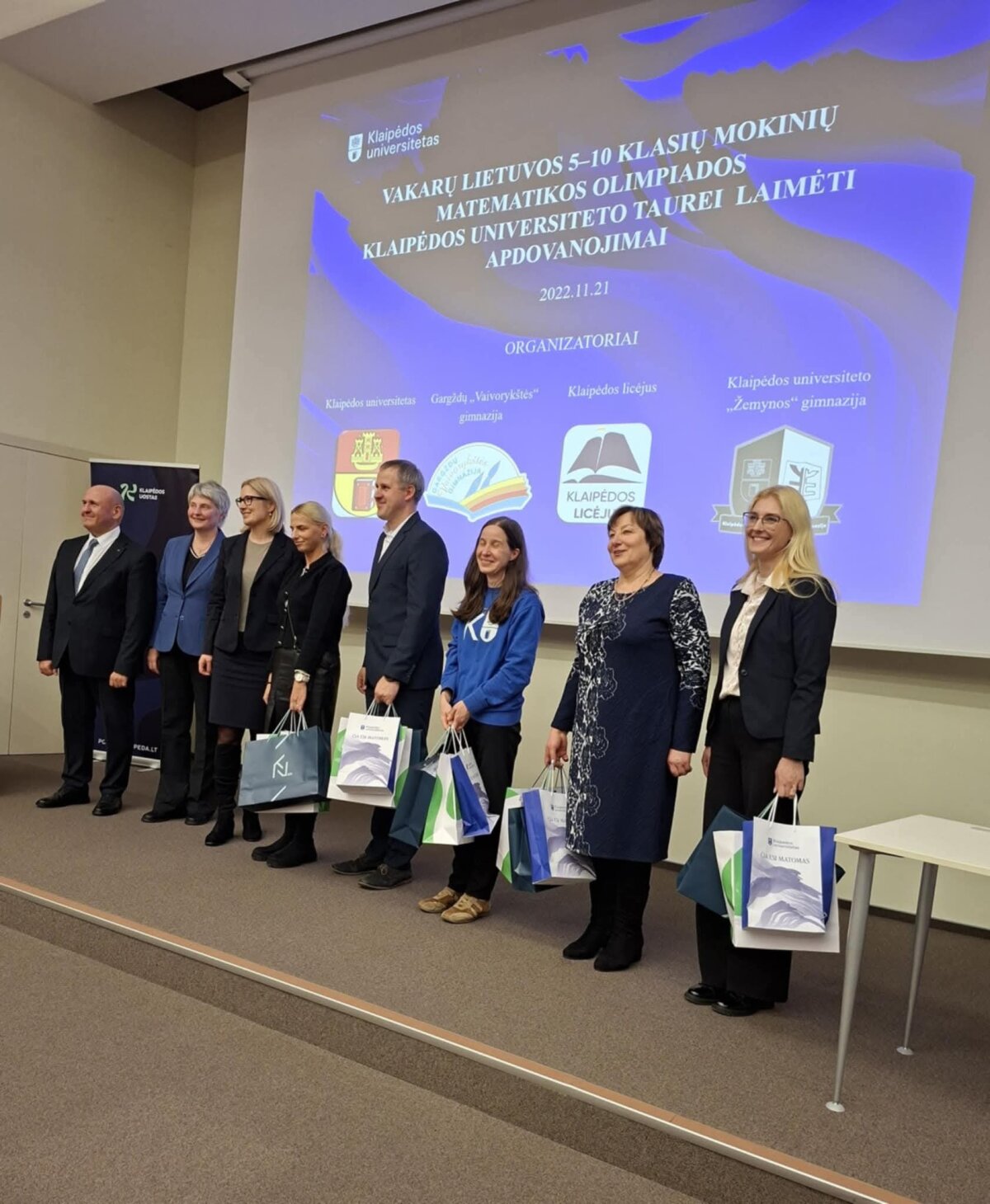 Džiaugiamės gimnazijos matematikos mokytojų Dalios Bendikienės, Giedriaus Žemaičio pedagoginio darbo įvertinimu. Jie ne pirmus metus yra Vakarų Lietuvos 5–10 klasių mokinių matematikos olimpiados KU taurei laimėti organizacinio komiteto nariai.
