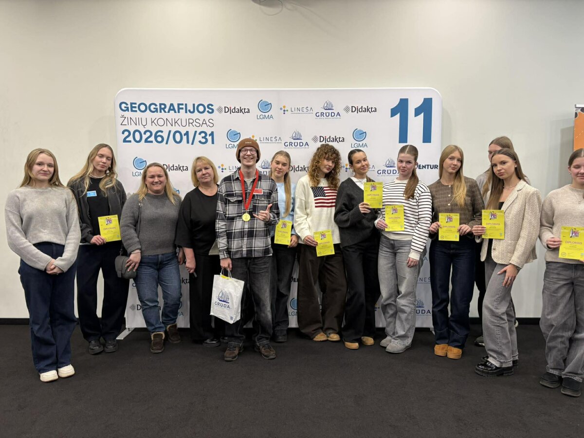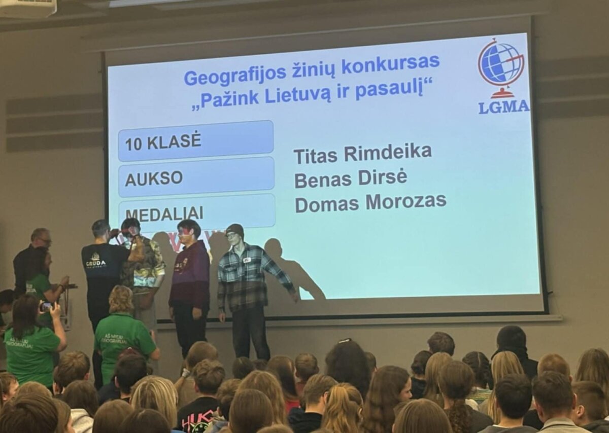 Sveikiname IIi klasės mokinį Titą Rimdeiką, geografijos ADVENTUR konkurse apdovanotą aukso medaliu! Gimnazisto mokytoja Jurga Venckauskienė. Džiaugiamės gausiu gimnazistų būriu, jų mokytojais Eimante Kiaulakiene, Aivaru Rimkevičiumi, kurie paragino mokinius išbandyti savo jėgas.