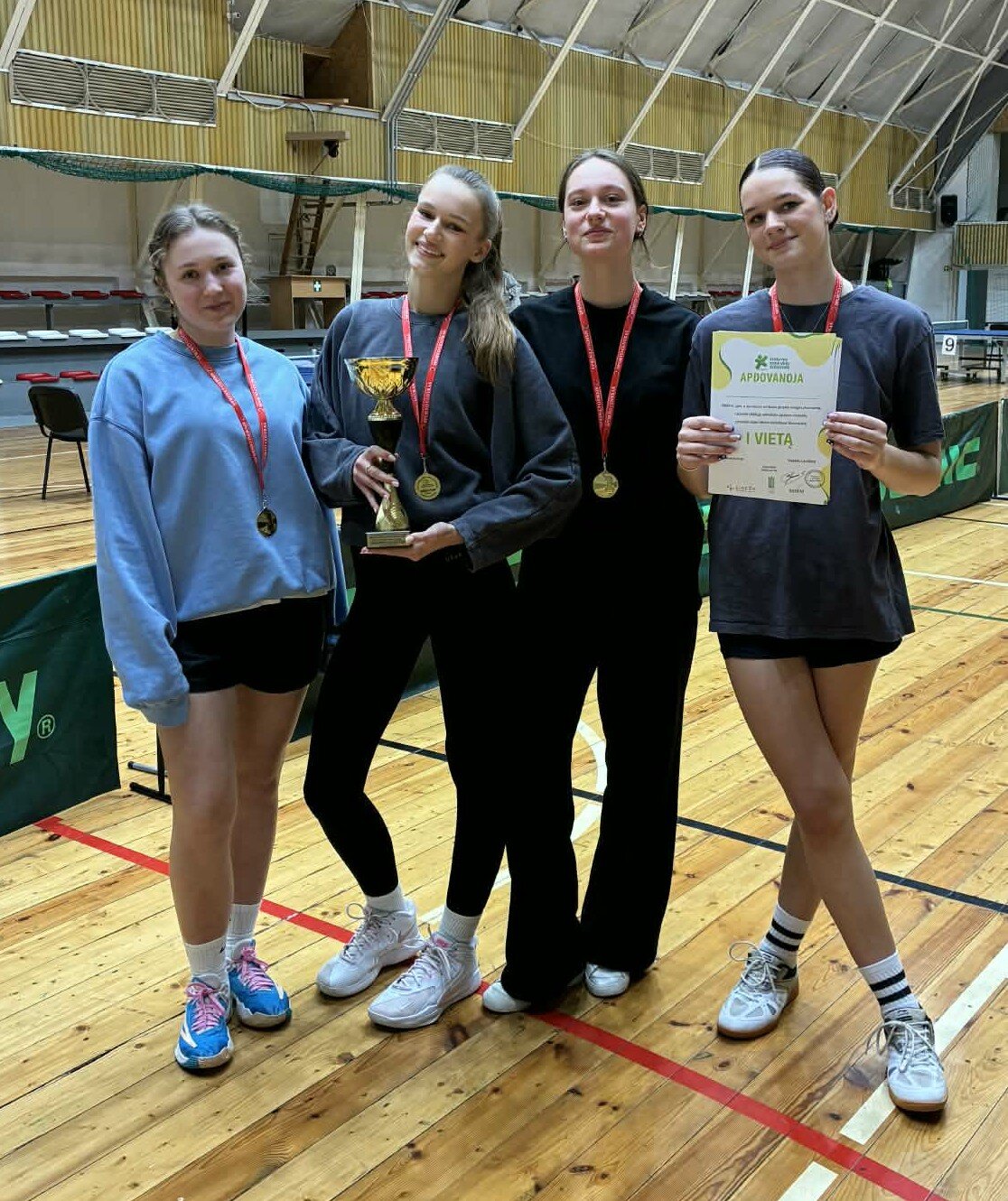 Sveikiname fizinio ugdymo mokytoją Tomą Papievį ir jo ugdytinius. Zoninėse stalo teniso varžybose merginų komanda: Paliaulytė Vytautė, Siminauskaitė Emilija, Meižytė Jurtė, Austėja Vyšniauskaitė, iškovojo pirmą vietą!
