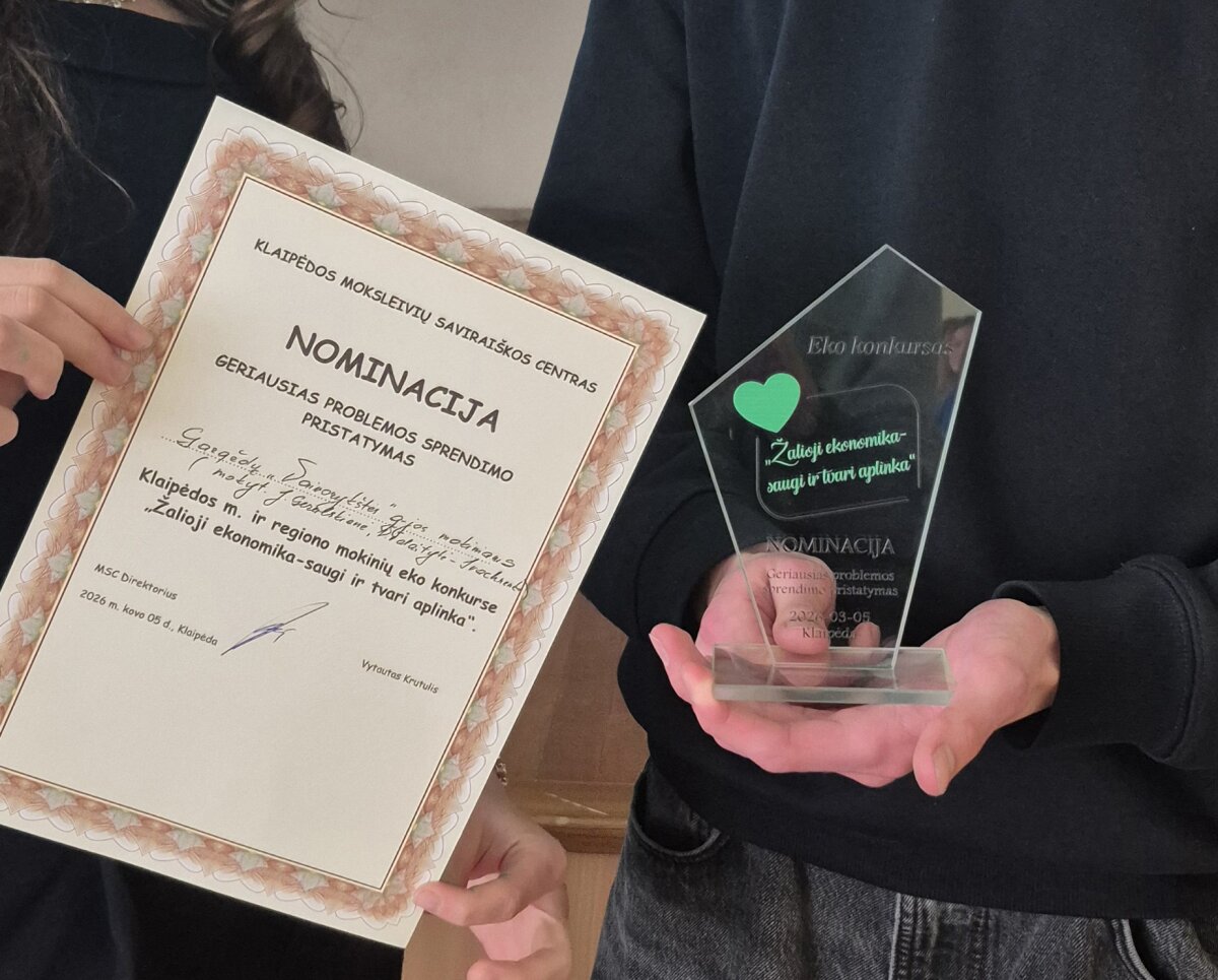 Kovo 5 dieną Klaipėdos moksleivių saviraiškos centre netrūko kūrybiškų idėjų, diskusijų ir žinių apie aplinkosaugą – čia vyko Klaipėdos miesto ir regiono 10–12 klasių mokinių eko konkursas „Žalioji ekonomika – saugi ir tvari aplinka“. Renginyje varžėsi net 10 komandų, pasiryžusių parodyti savo žinias ir pasiūlyti sprendimus tvaresnei ateičiai.