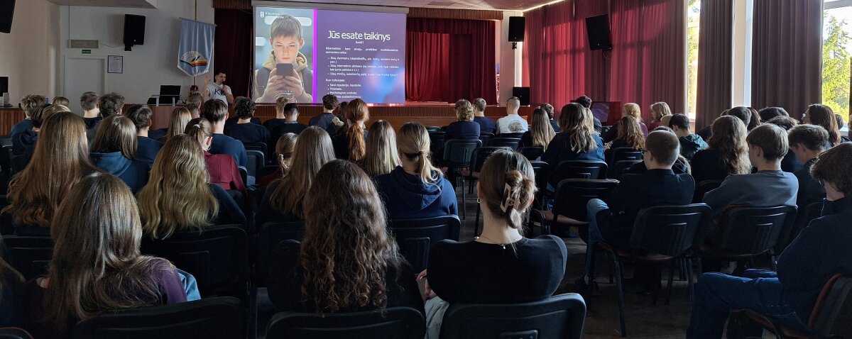 Spalio 20 d., bendradarbiaujant su Gargždų atviro jaunimo centru, vyko susitikimas su Klaipėdos universiteto Viešojo administravimo ir politikos mokslų katedros mokslo darbuotoju dr. Konstantinu Lotiuk. Jis dalijosi žiniomis tema „Skaitmeninio išgyvenimo gidas: pagrindiniai kibernetinio saugumo įrankiai jaunam žmogui“. Dėstytojas, Nacionalinio saugumo magistro programos atstovas, aptarė pagrindines kibernetinio saugumo gaires, skaitmeninius pavojus, tykančius jauno žmogaus kasdienybėje, patyčių kultūrą internete, kibernetinių sukčių taktikas, geopolitinius iššūkius skaitmeninėje erdvėje. Paskaita kvietė ne tik kovoti, bet ir nugalėti – pasitelkiant žinias, sąmoningumą ir tinkamus įrankius. Mokiniai buvo skatinami mąstyti apie savo saugumą internete ir ugdyti atsparumą, kad įveiktų skaitmeninius pavojus.