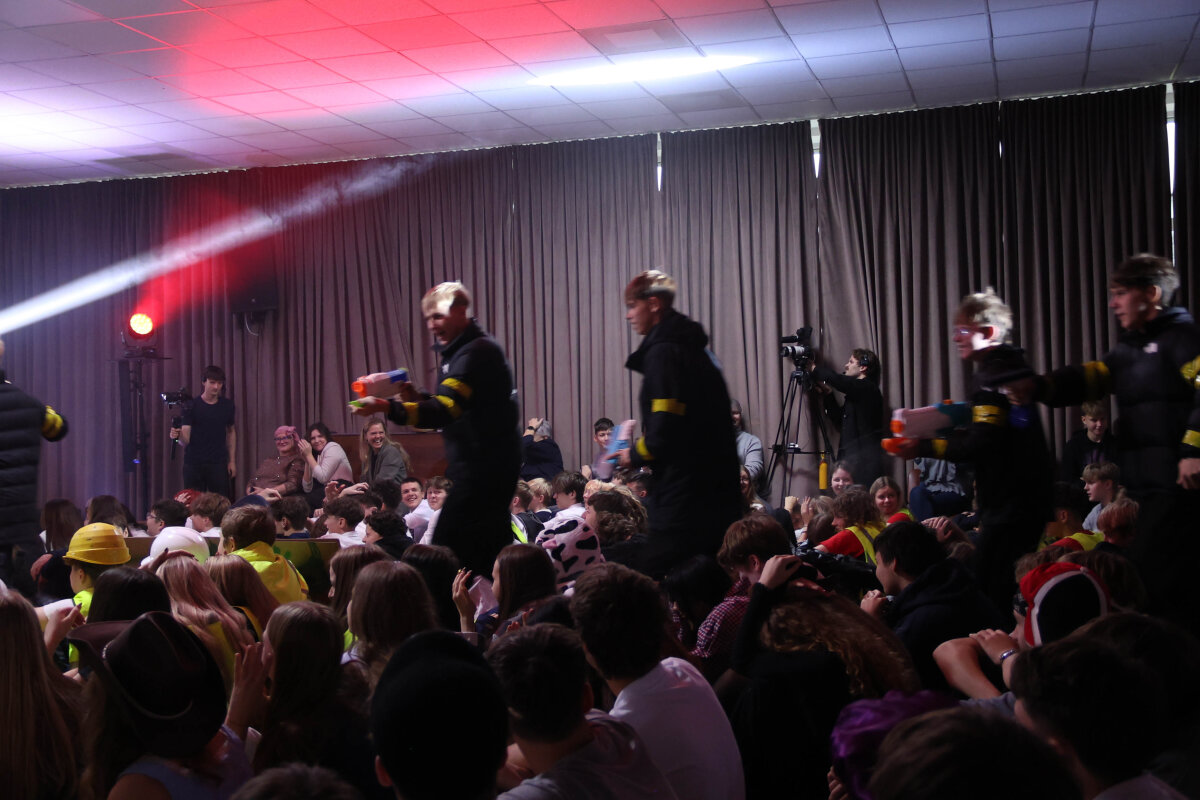 Prieš pasirodant penktai pirmokų klasei, aktų salėje pasidarė labai karšta, kilo gaisras. Laimei, į sceną žengė antrokai-gaisrininkai. Apie šį gaisrą reikėjo pranešti Lietuvai, todėl ant scenos keliavo „žurnalistai“, o tai Iu klasė. „Žurnalistų“ pasirodymas buvo tikrai neeilinis: pamatėme nuo politinių veikėjų iki modelių, išgirdome orų prognozę. Pasibaigus žinių laidai, atkeliavo Ib klasė, kurie laikinai tapo gimnazijos statybininkais. Jie šokdami projektavo ir statė naująją mokyklos aktų salę. Į pastatytą sceną iš karto bėgo „ūkininkai“, t.y. Ic klasė. „Ūkininkų“ pasirodymą matėme ne tokį, kokio tikėjomės. Išvydome įvykdytą karvių vagystę, už kurią vagys turėjo skaudžiai susimokėti. Na ir paskutiniai, bet neprasčiausi, pasirodė Id klasės mokiniai, kurie virto populiariausiais šių laikų influenceriais. Ši klasė į savo pasirodymą įtraukė ir publiką, kuri turėjo nuspręsti, kas laimės Metų nuomonės formuotojo rinkimus.