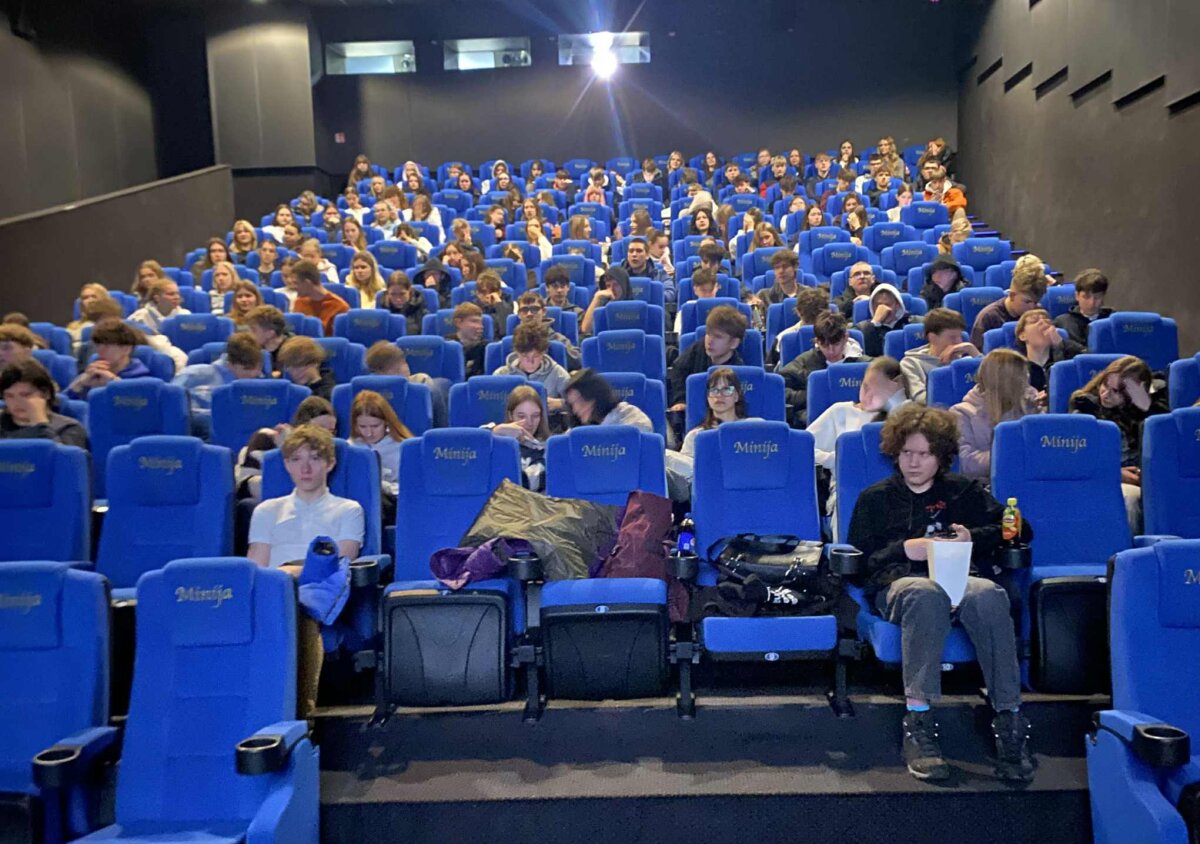 Kelios gimnazijos pirmokų klasės „Minijos“ kino teatre stebėjo filmą „Zootropolis2,“ kurio pagrindinė mintis - empatija, kito priėmimas, asmenybių skirtumų pavertimas privalumu. O kiti pirmokai kartu su IIa, IIc ir IId klasių mokiniais žiūrėjo tikrais įvykiais paremtą filmą „Vagišius“, kuriame netrūko nei humoro, nei detalių, skatinančių susimąstyti, kas yra tikrasis žmogiškumas.