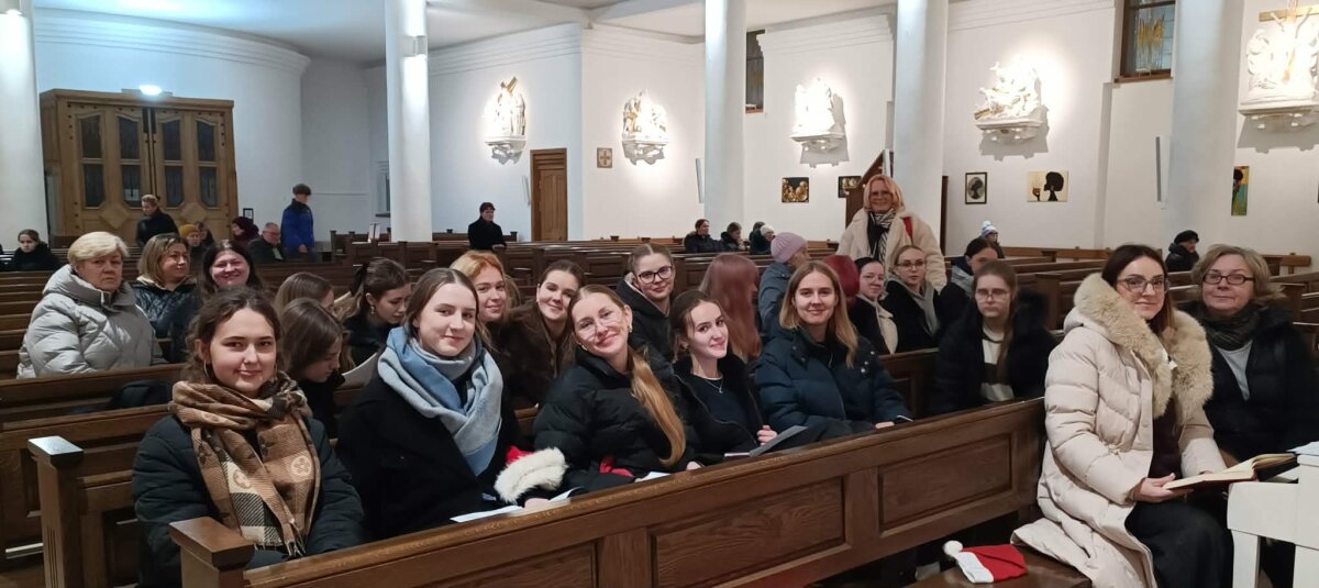 Tikybos mokytoja Judita Klimienė šv. Mišiose pasidalijo skaitiniu iš pranašo Izaijo knygos, o mokinių ir mokytojų choras giesmėmis šlovino Dievą ir džiaugėsi bendryste. Labai malonu, kad į šv. Mišias atėjo gimnazistų, mokytojų, choro dalyvių artimųjų. Kunigas Mindaugas Stonys dėkojo už buvimą kartu, buvimą vieniems dėl kitų, pasidžiaugė, kad visi šio vakaro dalyviai paruošė širdis Kristaus gimimui – gražiai metų pabaigos šventei.