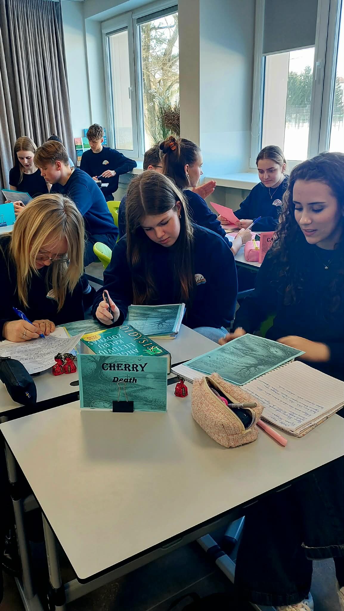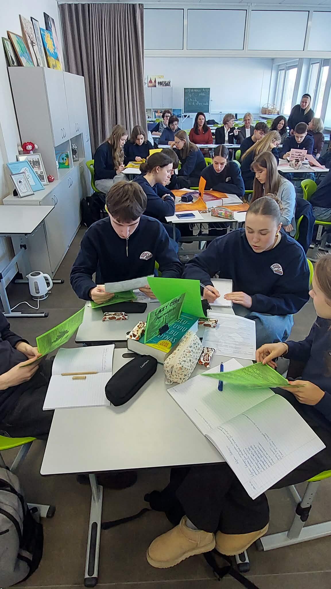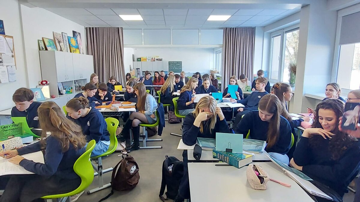 Pamokos tema „Intriguojantys V. Šekspyro sonetai“ iš karto pakvietė mokinius leistis į literatūrinę kelionę. Pamokos pradžioje mokytojos skaitė Šekspyro sonetus lietuvių ir anglų kalbomis, o klasėje nuskambėję klausimas „Ar eilėraštis gali slėpti paslaptis, emocinius konfliktus ar vidinę dramą?“ pažadino mokinių smalsumą ir paskatino gilintis į tekstus. Būtent toks intriguojantis startas padėjo mokiniams pasinerti į sonetų pasaulį, kuriame atsiskleidžia žmogaus jausmų sudėtingumas ir gyvenimo prasmės paieškos.