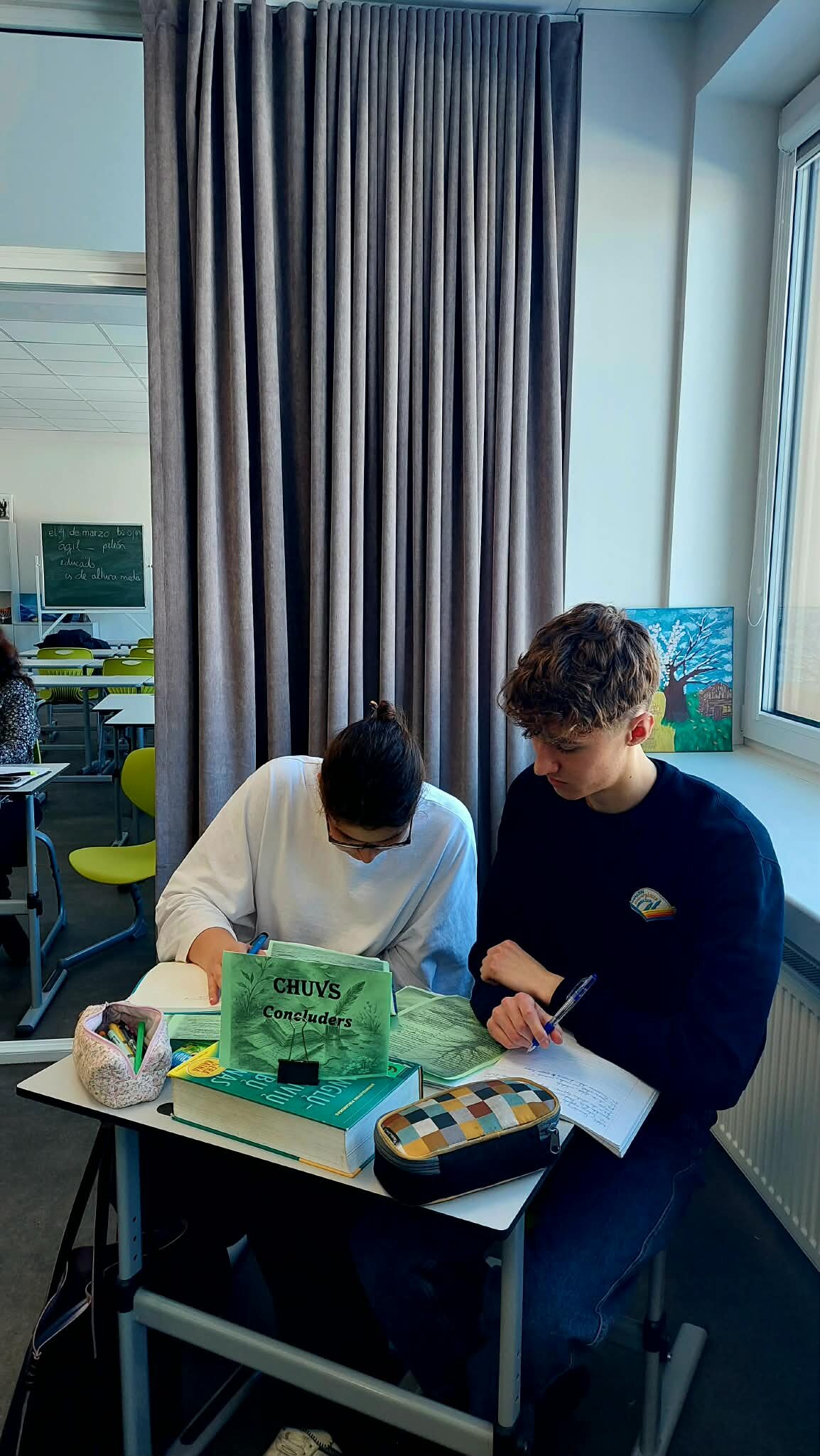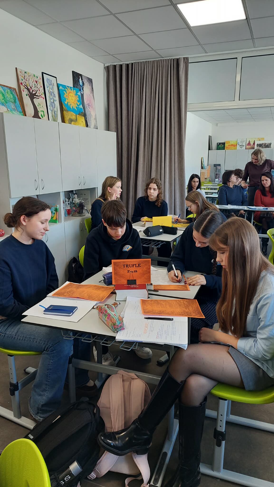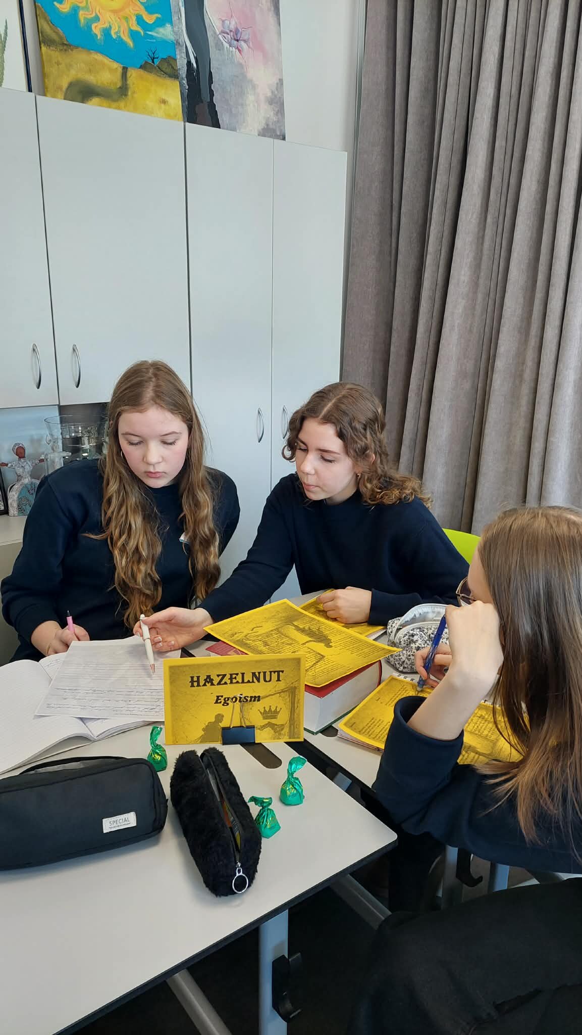 Pamokos tema „Intriguojantys V. Šekspyro sonetai“ iš karto pakvietė mokinius leistis į literatūrinę kelionę. Pamokos pradžioje mokytojos skaitė Šekspyro sonetus lietuvių ir anglų kalbomis, o klasėje nuskambėję klausimas „Ar eilėraštis gali slėpti paslaptis, emocinius konfliktus ar vidinę dramą?“ pažadino mokinių smalsumą ir paskatino gilintis į tekstus. Būtent toks intriguojantis startas padėjo mokiniams pasinerti į sonetų pasaulį, kuriame atsiskleidžia žmogaus jausmų sudėtingumas ir gyvenimo prasmės paieškos.