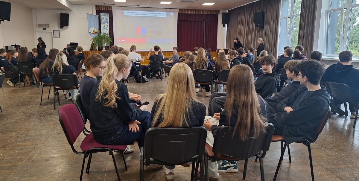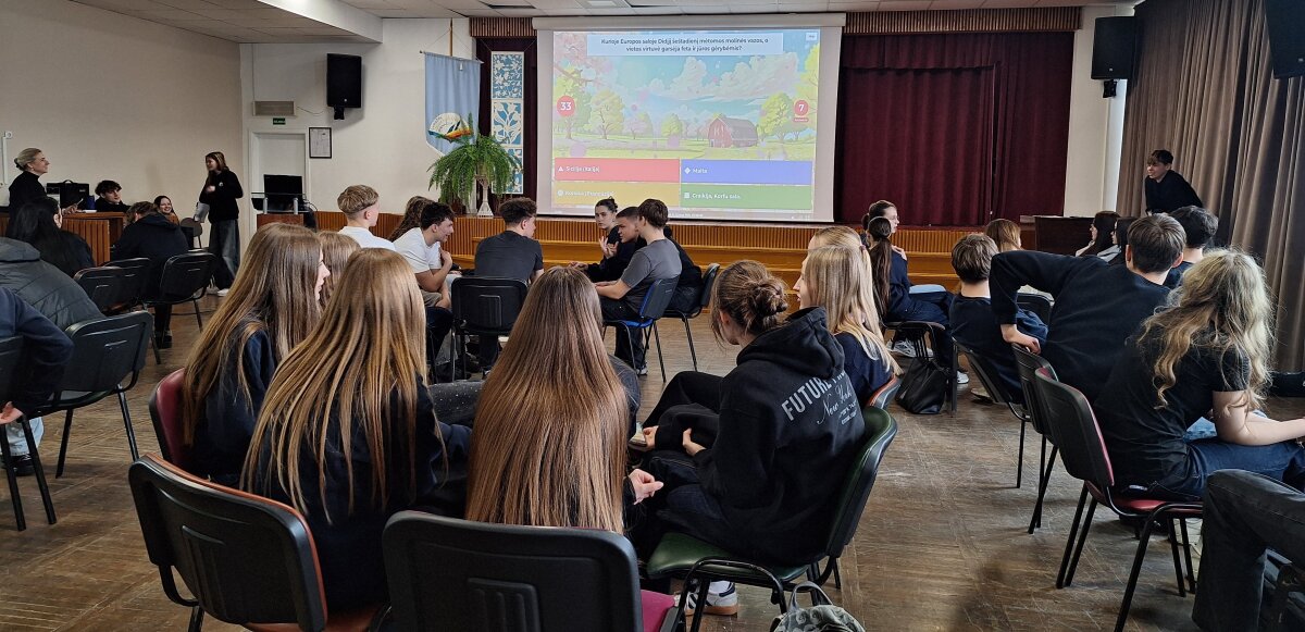 Kovo 26 d. gimnazijos I–II klasių mokiniai susivienijo žinių ir smalsumo kupinam iššūkiui – dalyvavo interaktyvioje Kahoot viktorinoje apie Velykų tradicijas Europoje ir visame pasaulyje. Renginį profesionaliai vedė Jaunieji MEPA nariai (Mokyklų Europos Parlamento ambasadorių programa), pasirūpinę įtraukiančiais klausimais ir draugiška atmosfera.