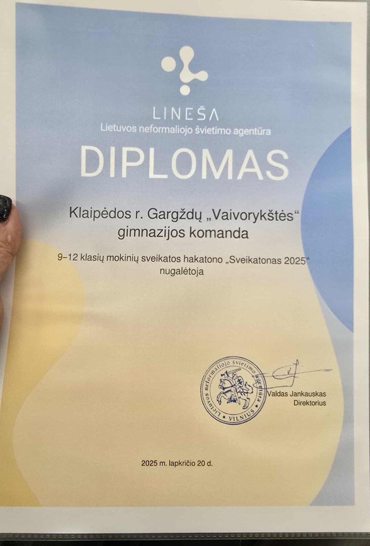 Sveikiname Joną Samoškį, Faustą Frolovą, IIi kl. gimnazistus, ir jų fizinio ugdymo mokytoją Anželiną Papievienę, įveikusius nemažą būrį komandų ir tapusiais „Sveikatonas2025“ finalo nugalėtojais!