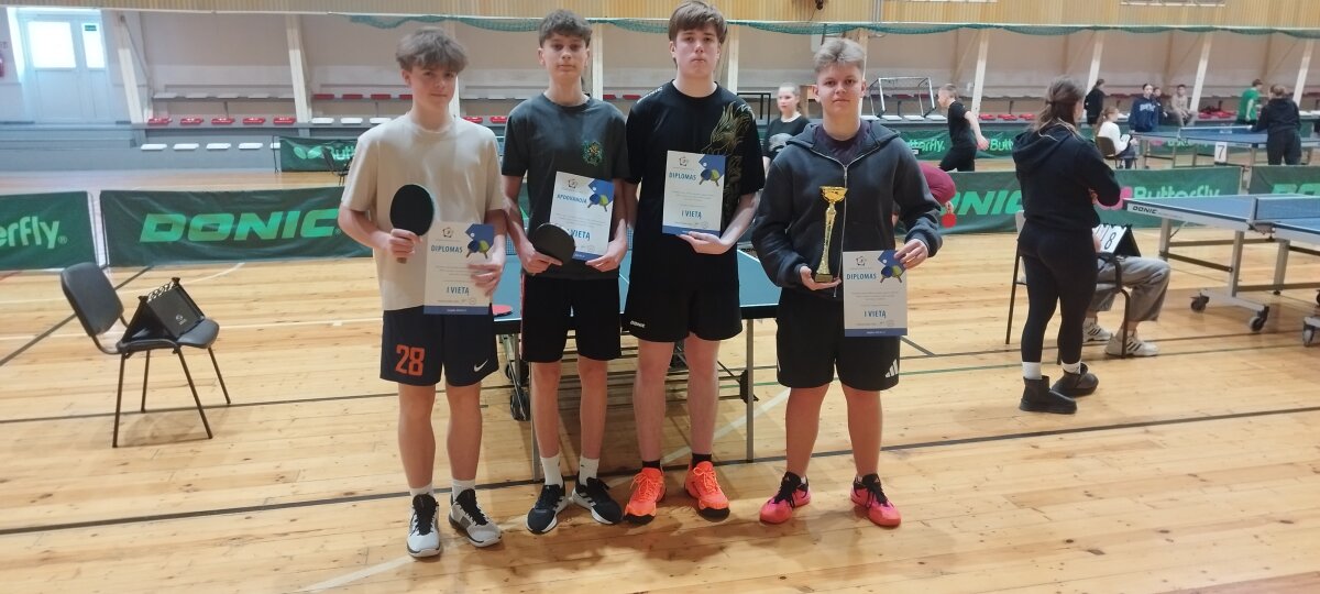 Džiugu pasidalinti žinia, kad gimnazistai Virbys Modestas, Ic, Gruzdys Oskaras, Ig, Burniauskas Domas, Ie, Budrikis Rokas, Ie, Paliulytė Vytautė, IIg, Meižytė Jurtė, IIi, Vyšniauskaitė Austėja, IIi, tapo Klaipėdos rajono bendrojo ugdymo mokyklų stalo teniso varžybų nugalėtojais.