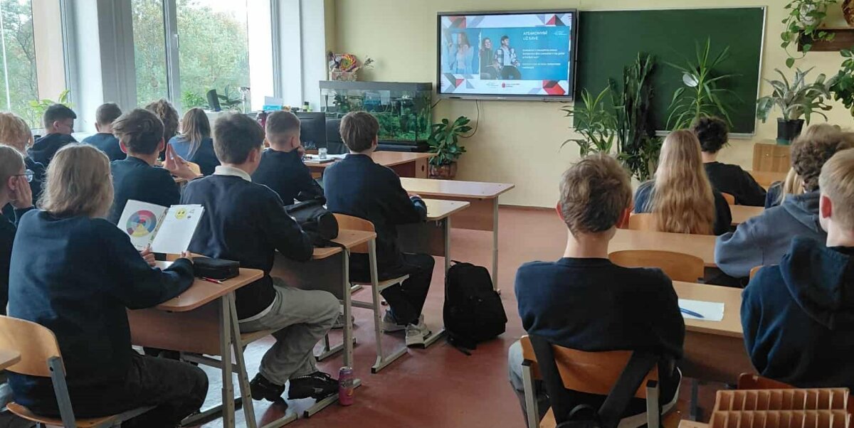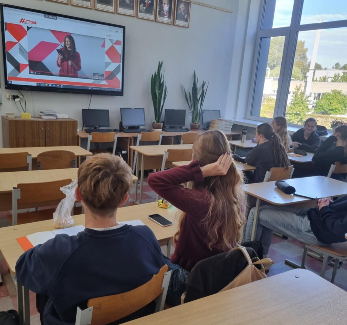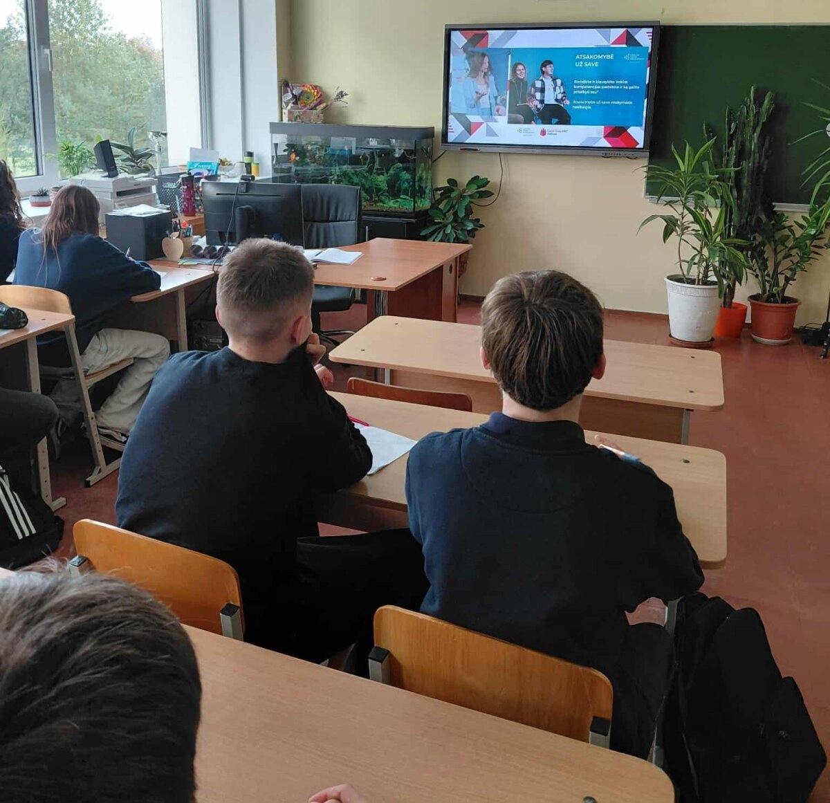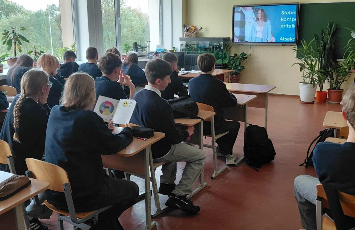 Spalio 7 dieną per gyvenimo įgūdžių ir tikybos pamokas Gargždų „Vaivorykštės“ gimnazijos mokiniai kartu su mokytojomis Aušra Malyševa ir Judita Klimiene prisijungė prie tiesioginės renginio „Užsikrauk karjerai!“ transliacijos.