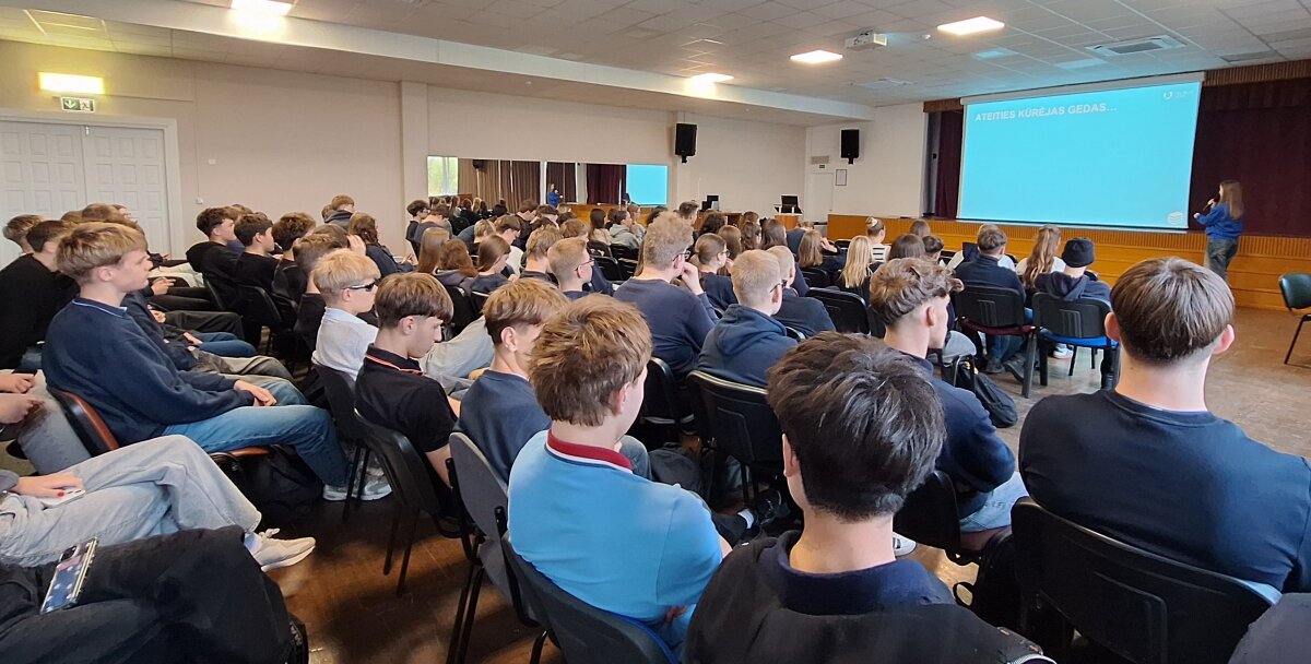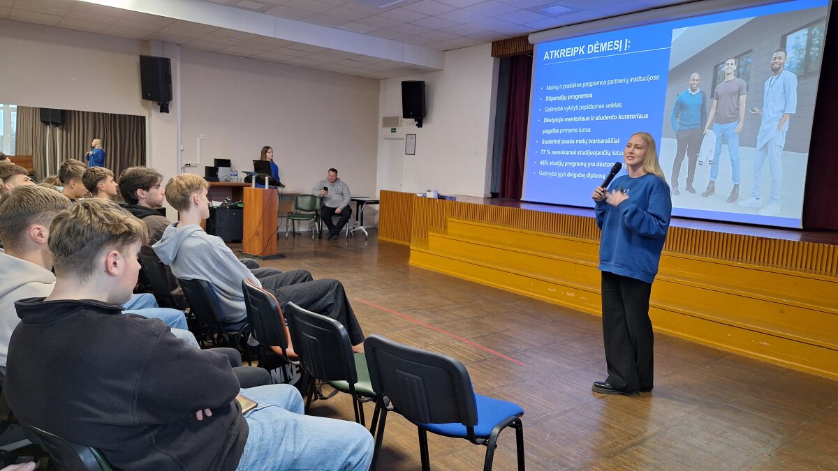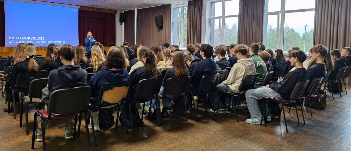 Su II klasių mokiniais pasidalinta informacija tema „Ką po mokyklos? (GEDAS. (NE)SĖKMĖS ISTORIJA)“. Gimnazistai įtaigiai supažindinti su trimis skirtingais „Gedo tipais“, realiomis studentų istorijomis. Tai padėjo jaunimui aiškiau suvokti, kaip individualūs sprendimai veikia tolimesnį kelią ir kokių klaidų verta vengti.