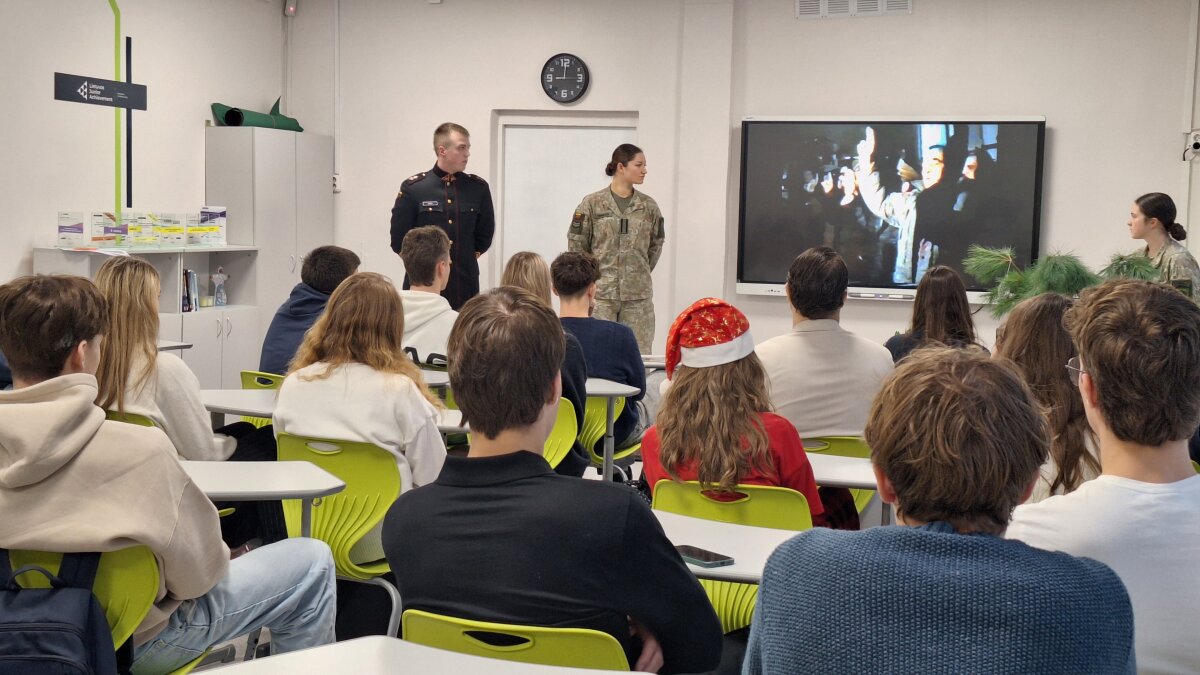 Mokiniai turėjo galimybę užduoti klausimų apie pasiruošimą stoti į karo akademiją, apie kasdienybę akademijoje. Susitikimas buvo informatyvus ir motyvuojantis, suteikė aiškumo apie karjeros galimybes gynybos srityje. Dėkojame Liudui, Kamilei ir Elingai už nuoširdų pasidalijimą patirtimi, už savo gimnazijos lankymą.