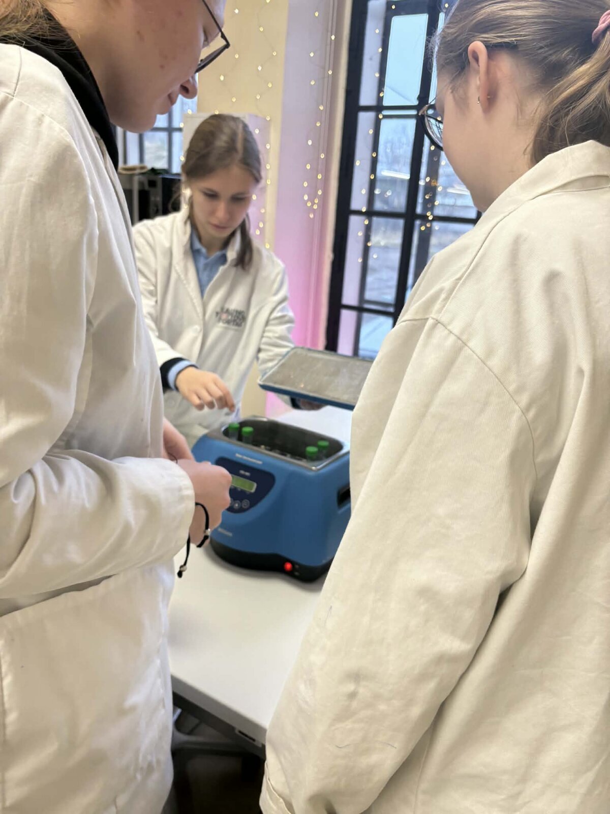 Antroje išvykos dalyje Kauno tvirtovės VII forto laboratorijoje mokinės dalyvavo dviejuose biologijos užsiėmimuose: DNR išskyrimas (gimnazistės susipažino su DNR struktūra ir funkcija, o praktikos metu pačios išskyrė DNR iš vaisių ar daržovių) ir kraujo tyrimai (mokinės sužinojo apie kraujo ląsteles, kraujo grupių reikšmę būnant donorais, antigenų ir antikūnų sąvokas). Laboratorijoje jos nustatė kraujo grupes, stebėjo kraujo tepinėlius mikroskopu ir mokėsi diferencijuoti ląsteles.