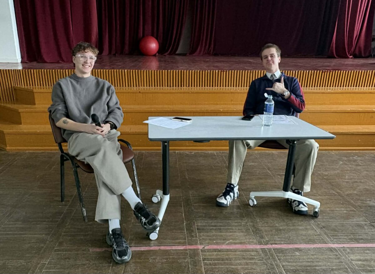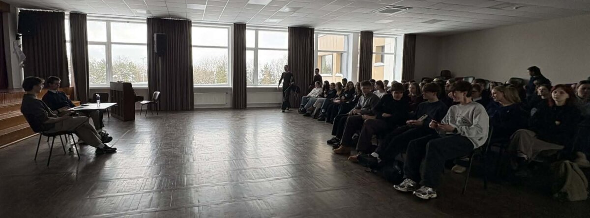 Praėjusiais mokslo metais gimnaziją baigę Benediktas Motuzas ir Nedas Kymantas inicijavo susitikimą su dabartiniais abiturientais.