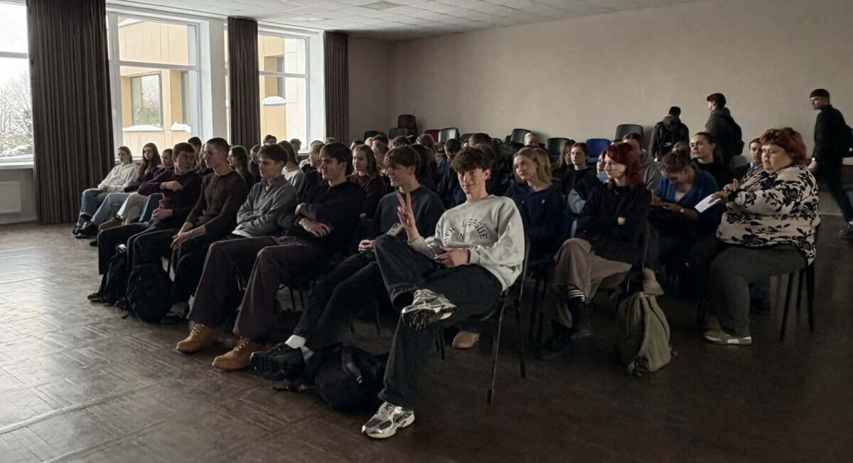 Jaunuoliai pristatė savo pusmečio aukštojoje mokykloje patirtį. Jie priėmė sprendimą kalbėti apie tai, kas IV klasės mokiniams yra svarbu: stojimai, mokymosi sistema, atsiskaitymų tvarka, gyvenimas bendrabutyje, galimybės bei nuolaidos studentams. Pokalbio tikslas buvo supažindinti gimnazistus su studijų aukštojoje mokykloje ypatumais ir atsakyti į rūpimus klausimus.