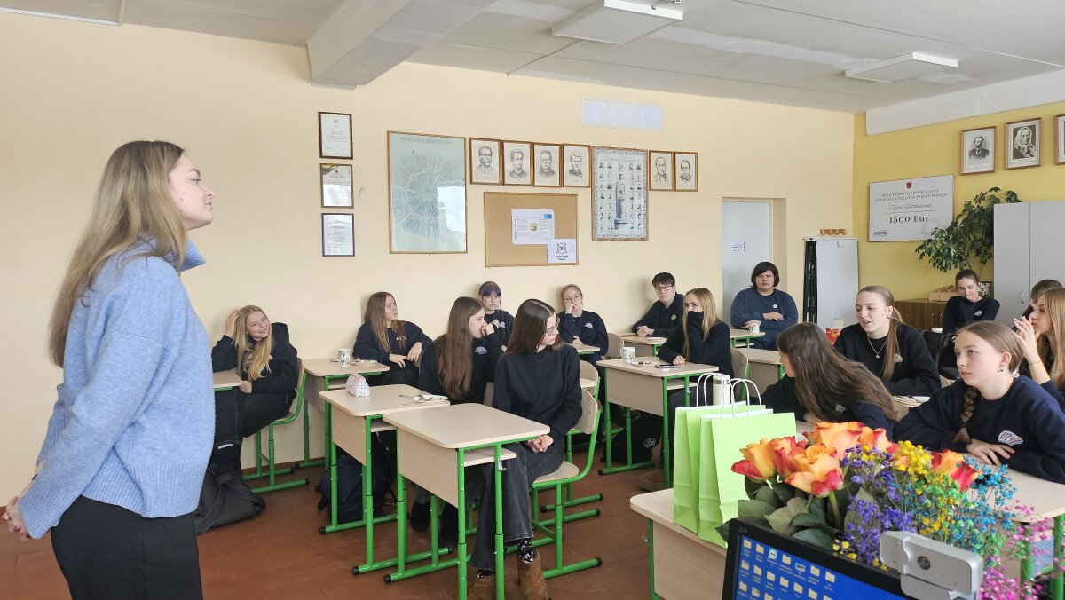 Antrokai buvusiai gimnazistei, mokinių tarybos pirmininkei, daugelio filologinių konkursų laureatei, uždavė klausimų, kaip motyvuoti save mokytis, kodėl reikia skaityti grožinę literatūrą ir kaip tam rasti laiko, kaip suprasti, kokią specialybę rinktis. Pirmokai aktyviai pasisakė apie tikslų siekimą, pasidalijo mėgstamu eilėraščiu, diskutavo apie mokymąsi ir turiningą laisvalaikį. Gimnazistus įtraukė praktinės užduoties atlikimas, pralinksmino įteikti prizai.