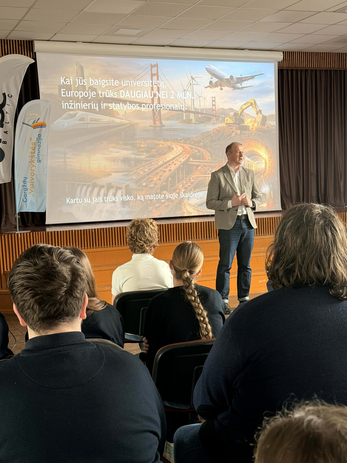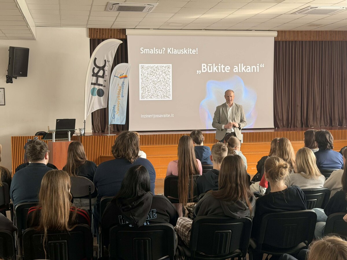 Balandžio 17 dieną gimnazijoje surengta šiai iniciatyvai skirta paskaita, kurioje gausus būrys gimnazijos I–II klasių mokinių turėjo galimybę susitikti su „HSC Baltic“ generaliniu direktoriumi Rimvydu Beržonskiu. Svečias pristatė statybos inžinieriaus profesiją, dalijosi profesine patirtimi, aptarė darbo iššūkius ir perspektyvas. Jis pabrėžė, kad inžinerija apima ne tik teorines žinias ar skaičiavimus, bet ir gebėjimą spręsti praktines problemas, kurti bei įgyvendinti sprendimus, darančius tiesioginę įtaką kasdieniam gyvenimui.